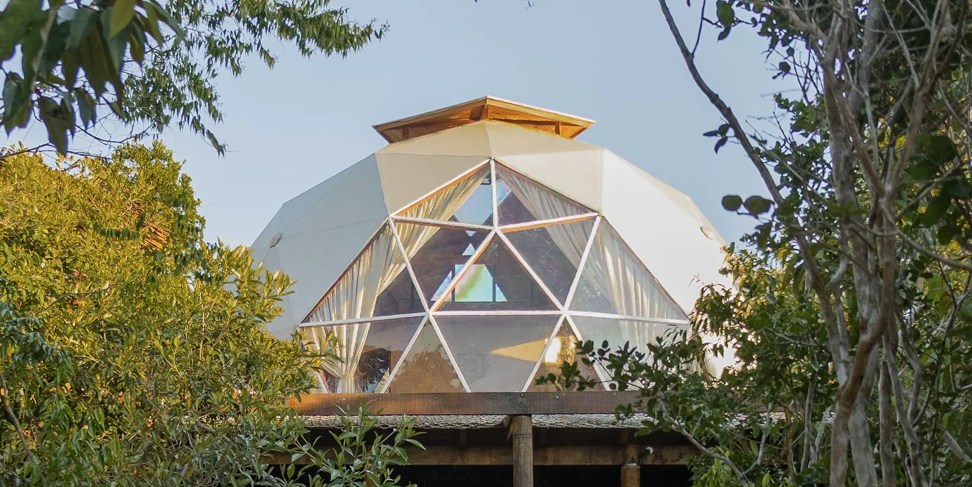 ✨ Refúgio geodésico no coração da natureza — viva uma experiência única de conforto, silêncio e conexão interior em um domo com design orgânico e vista para as montanhas.