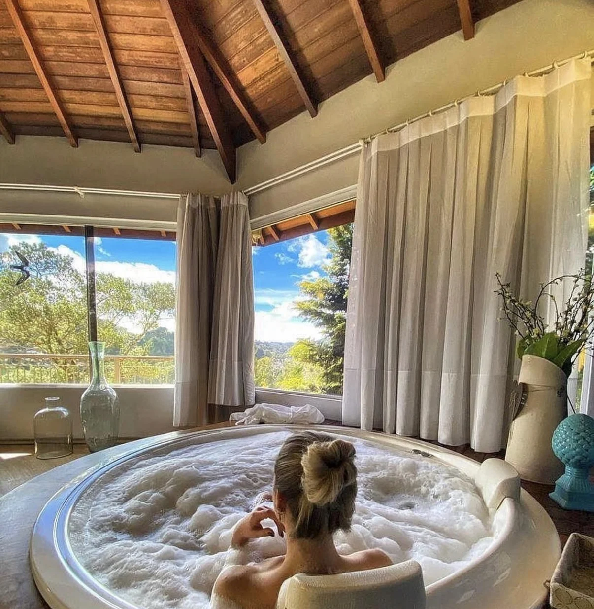Ar condicionado Secador de cabelo TV a cabo / Smart TV Jacuzzi / Ofurô / Banheira Coberta Frigobar Lareira Máquina de Café Enxoval de Luxo (+ Roupão e Pantufa) Sauna Cozinha Estação de trabalho (mesa e cadeira) Piscina Aquecida ou climatizada Borda Infinita Coberta