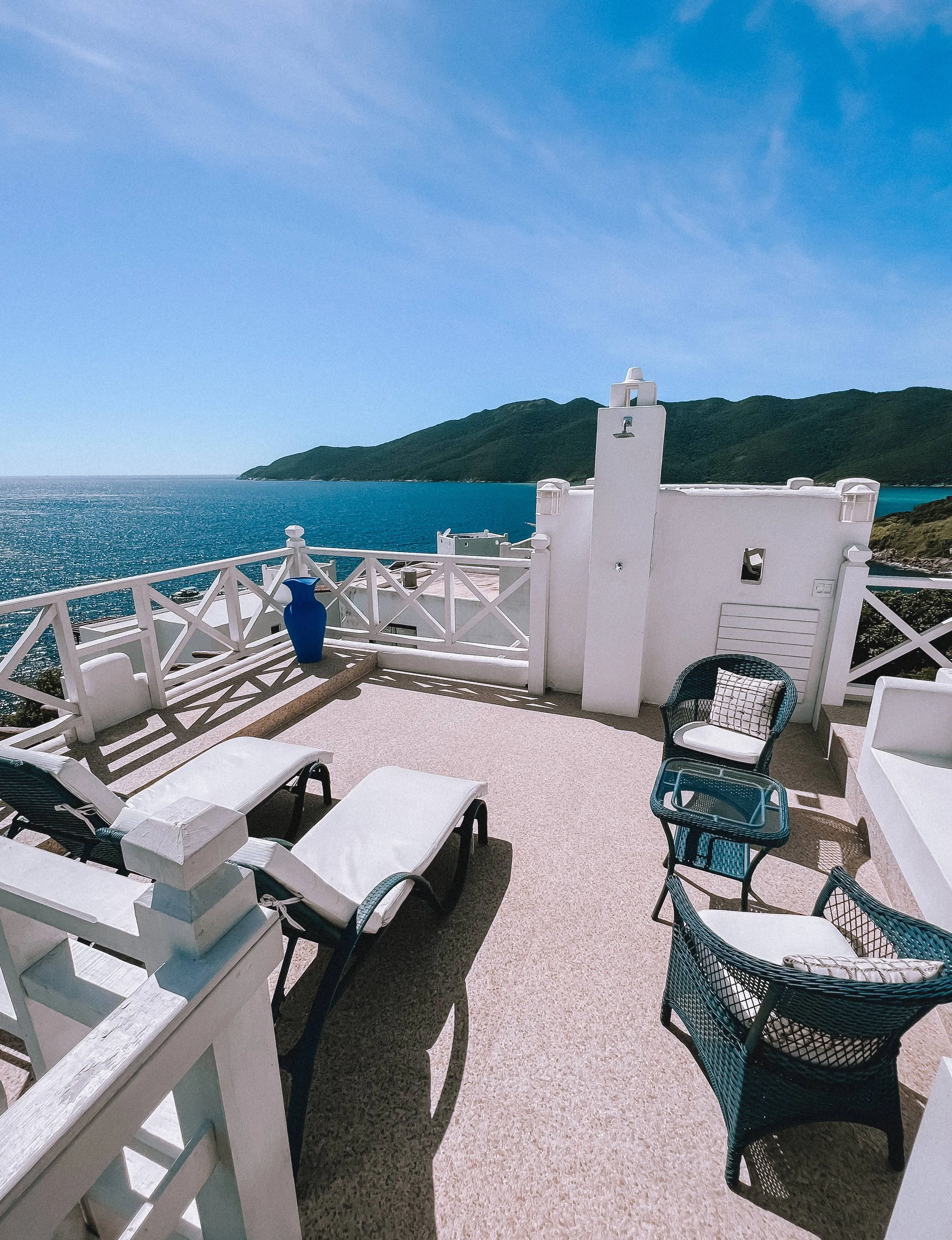 Um toque da Grécia e uma vista para o mar reunidos no Pontal do Atalaia! Casa para locação completa, em meio à natureza, pronta para receber os hóspedes.