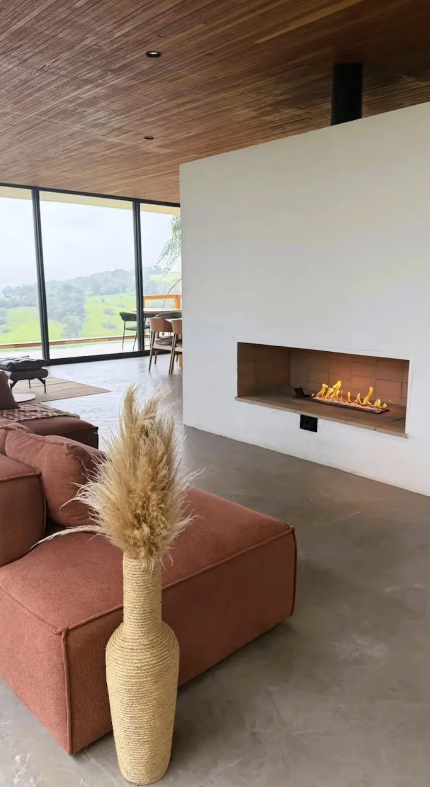 A área externa é o grande destaque, com piscina aquecida, churrasqueira e fogão a lenha, perfeitos para momentos compartilhados em meio ao campo. Os ambientes internos são amplos e confortáveis, acomodando até dez hóspedes com privacidade e bem-estar. Trata-se de uma experiência exclusiva para quem deseja viver o campo com charme, tranquilidade e conexão verdadeira com a natureza.