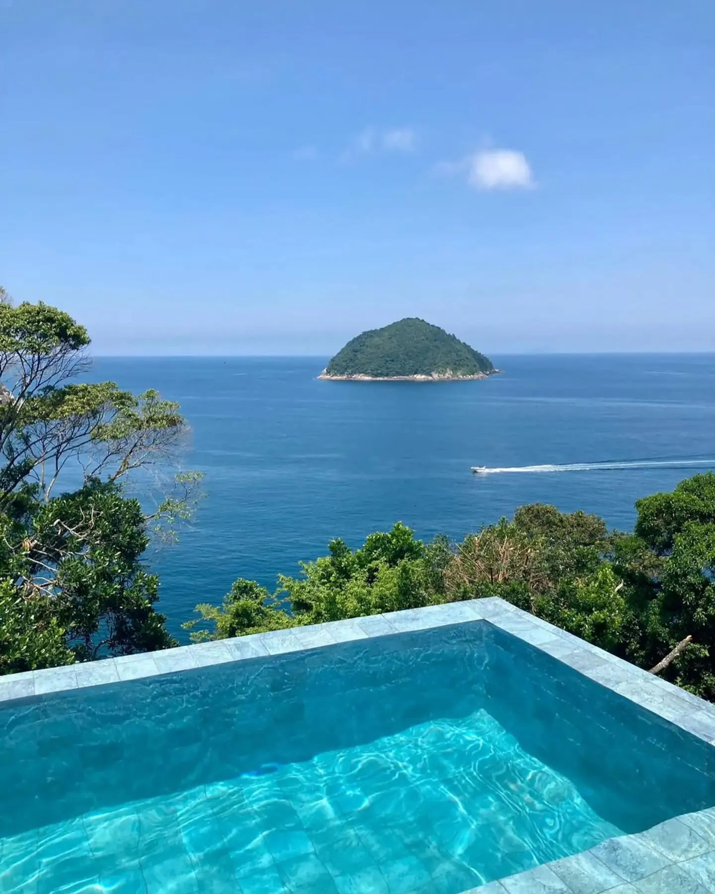Piscina com borda infinita, aquecida, debruçada sobre o mar e com vista de 180º para as praias de Toque Toque Grande, Calhetas e para o pôr do sol.