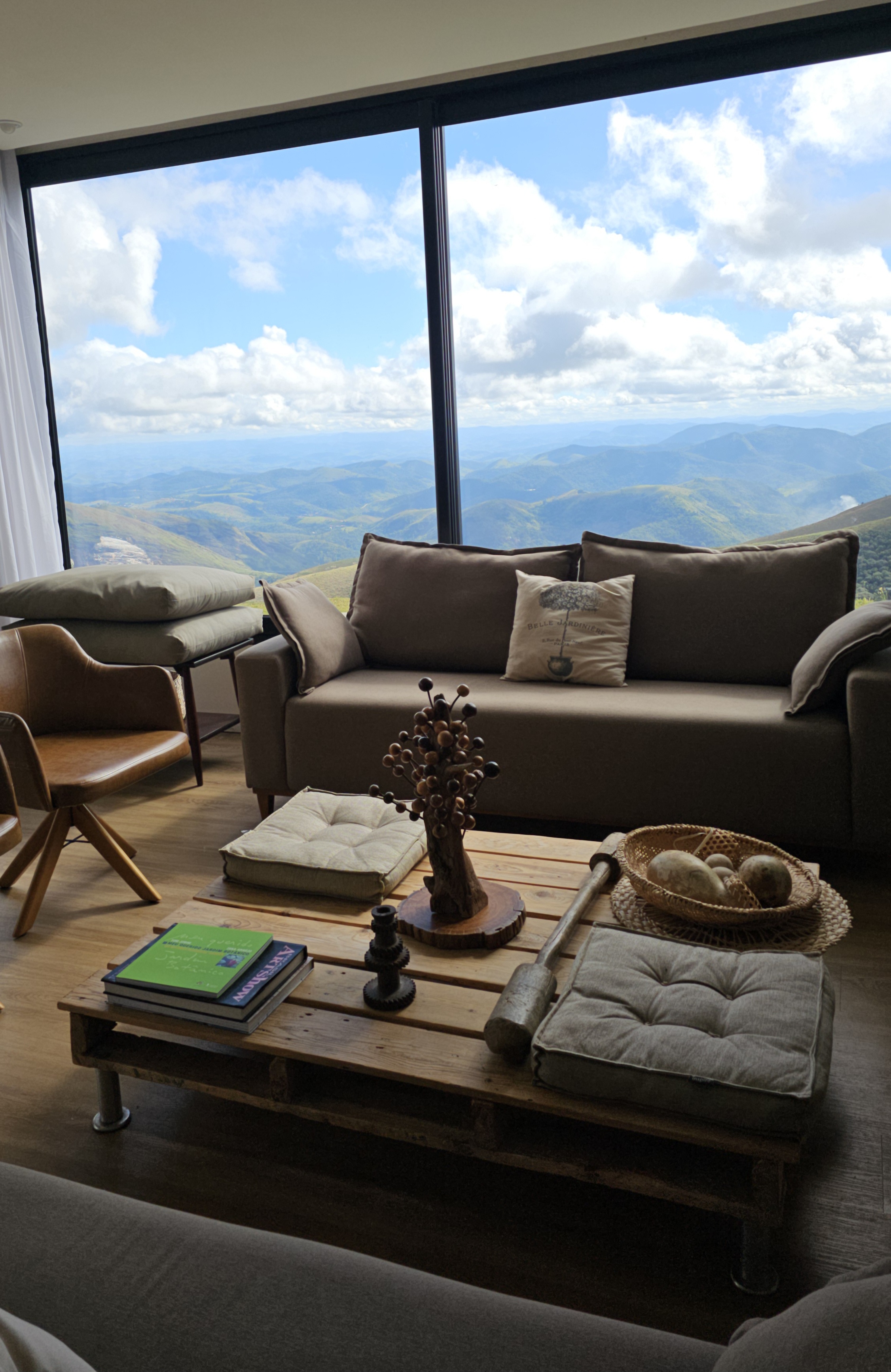 A arquitetura da Casa da Vista e a sua localização a 1.100m de altitude oferecem uma vista privilegiada para as serras de Petrópolis e região. Ao chegar é impossível não se impactar com a sensação de estar 'acima das nuvens'.