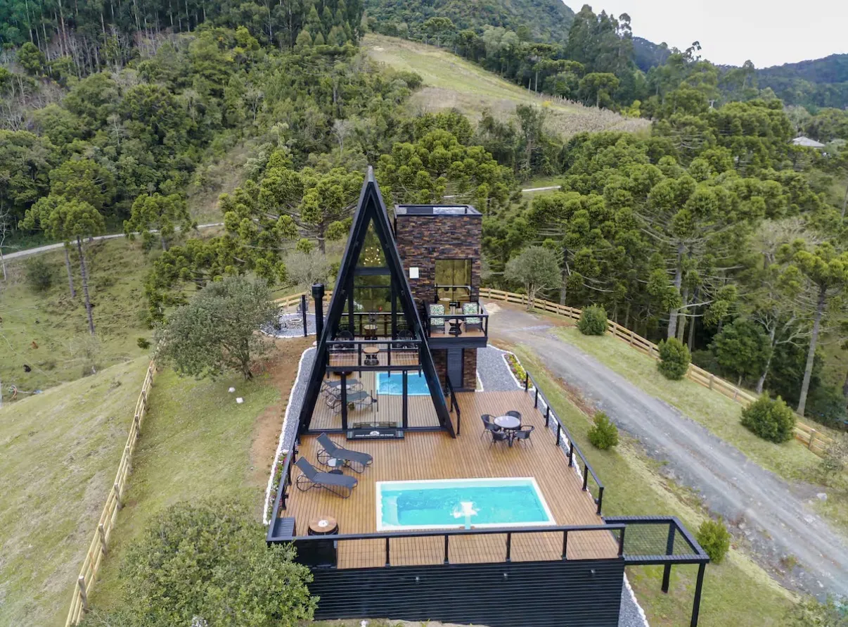 Este chalé de alto padrão na Serra Catarinense oferece uma experiência única de conforto, exclusividade e privacidade em meio às montanhas. Cercado por uma paisagem encantadora, o ambiente convida a desacelerar e aproveitar o clima da serra, com lareira acolhedora, hidromassagem e uma atmosfera perfeita para momentos especiais.