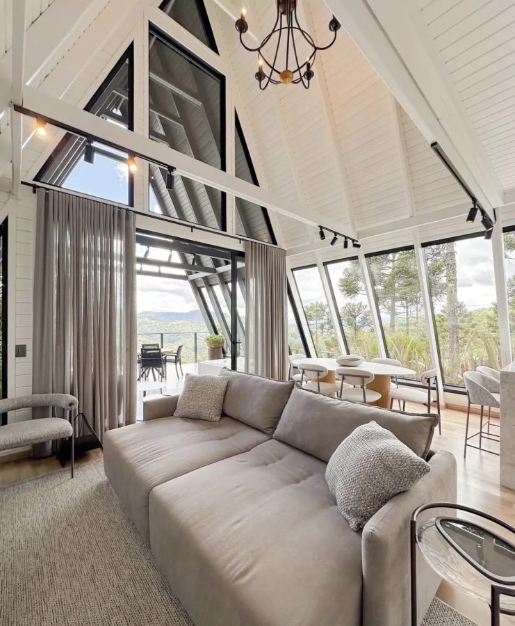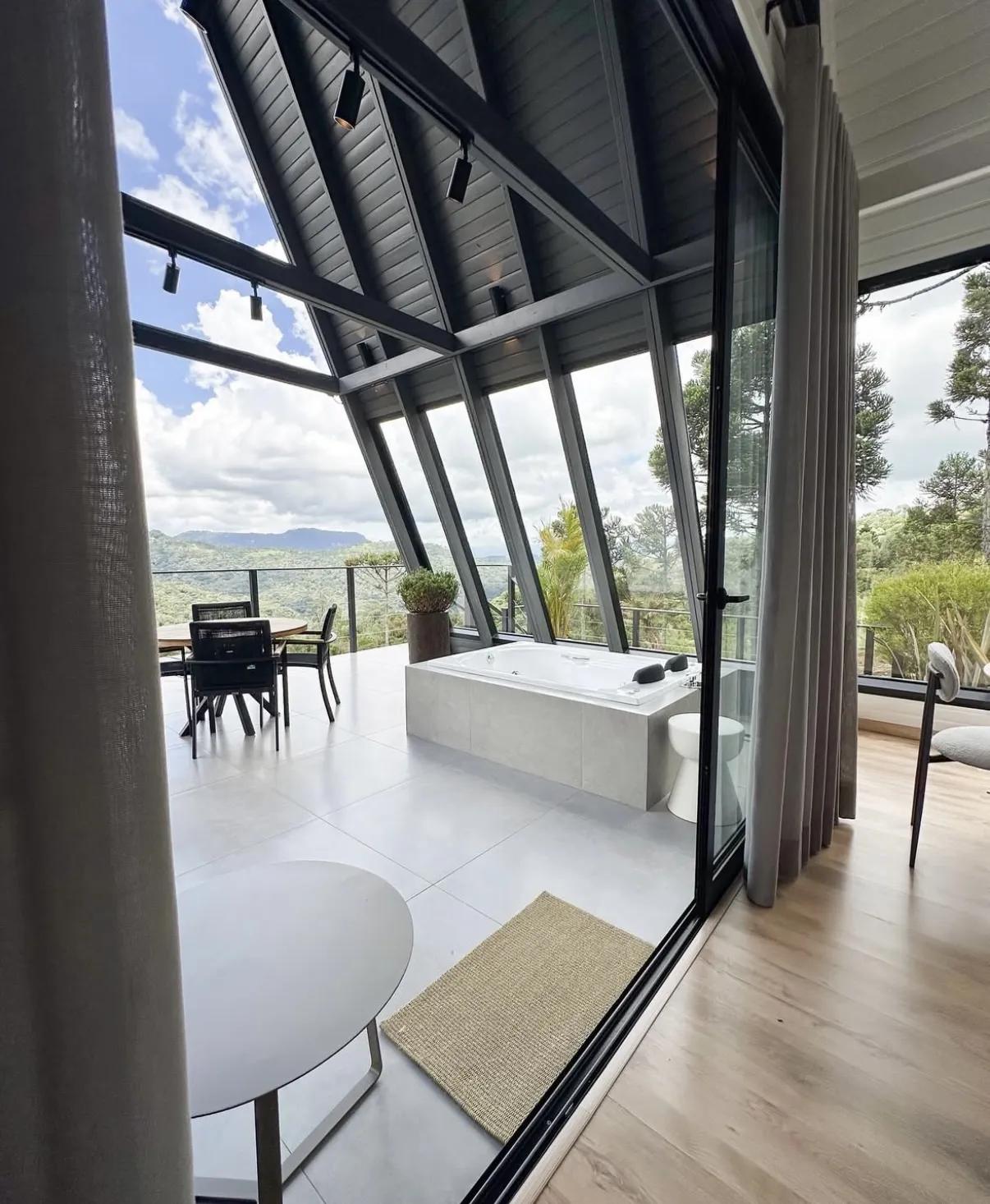 Em meio às paisagens exuberantes da Serra Catarinense, este chalé oferece uma experiência completa de conforto, elegância e tranquilidade. Com vista panorâmica das montanhas de Urubici, o ambiente foi cuidadosamente projetado para unir sofisticação e bem-estar. A estrutura conta com uma suíte superior com cama king-size, banheiro com piso aquecido e varanda, além de uma suíte térrea e um quarto adicional, ambos com cama queen. Acomodando confortavelmente famílias, dispõe ainda de banheiros adicionais, lavabo, lavanderia completa e cozinha equipada com utensílios e eletrodomésticos de alto padrão.