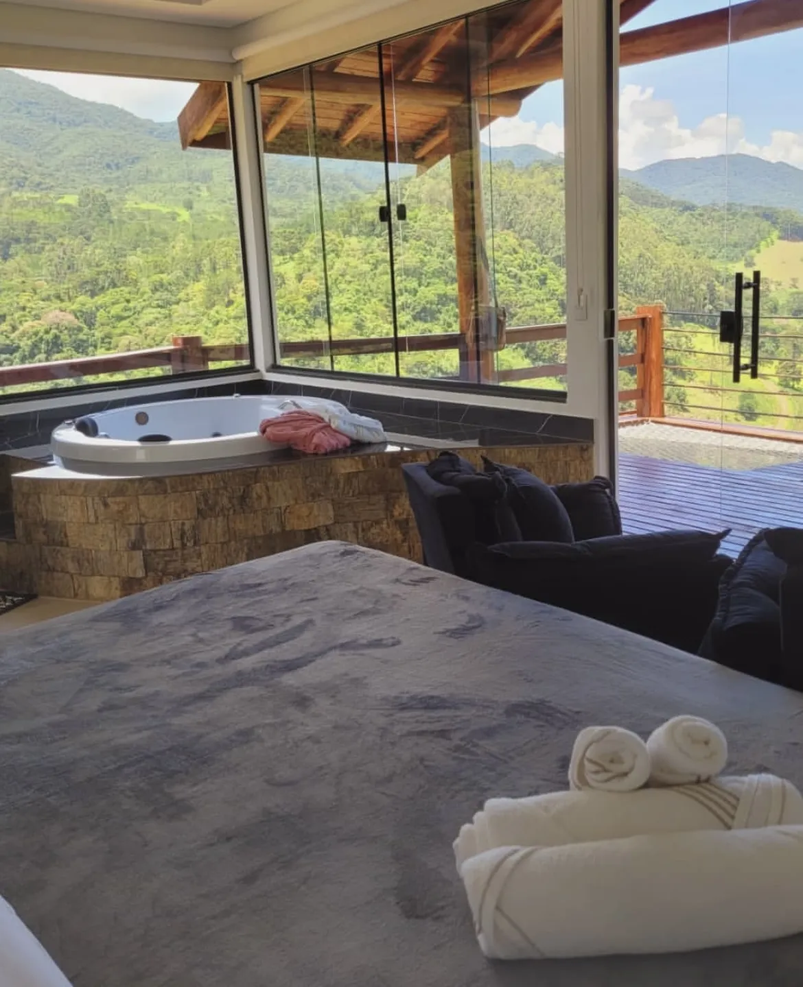 Ar condicionado Secador de cabelo TV a cabo / Smart TV Jacuzzi / Ofurô / Banheira Coberta Frigobar Lareira Máquina de Café Enxoval de Luxo (+ Roupão e Pantufa) Sauna Cozinha Estação de trabalho (mesa e cadeira) Piscina Aquecida ou climatizada Borda Infinita Coberta