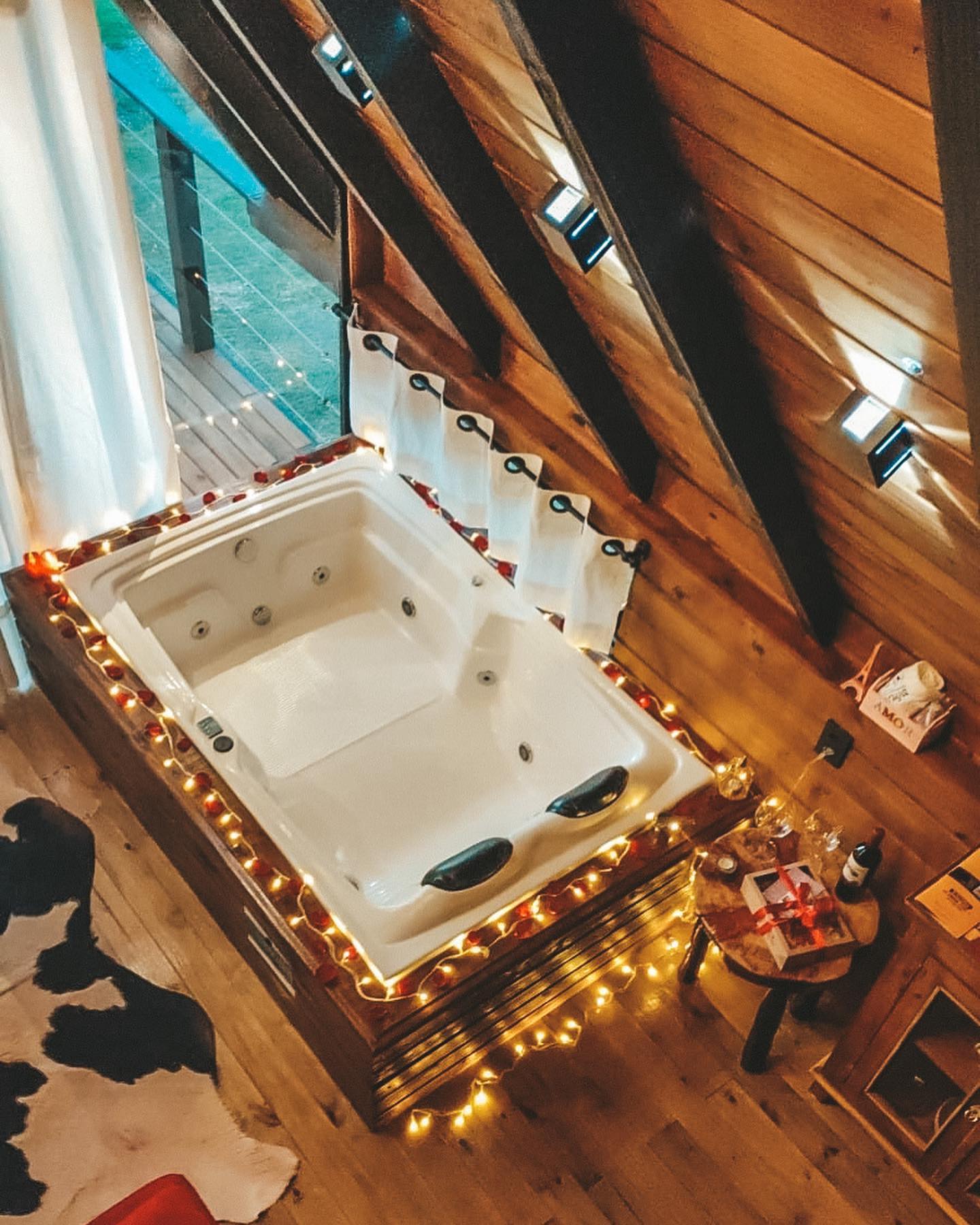 O espaço dispõe de piscina aquecida com tratamento de sal, banheira interna, lareira, churrasqueira a carvão integrada à área externa, cozinha completa, fogo de chão, adega privativa e sistema automatizado com assistente virtual, reunindo comodidade e bem-estar para uma estadia relaxante e especial.