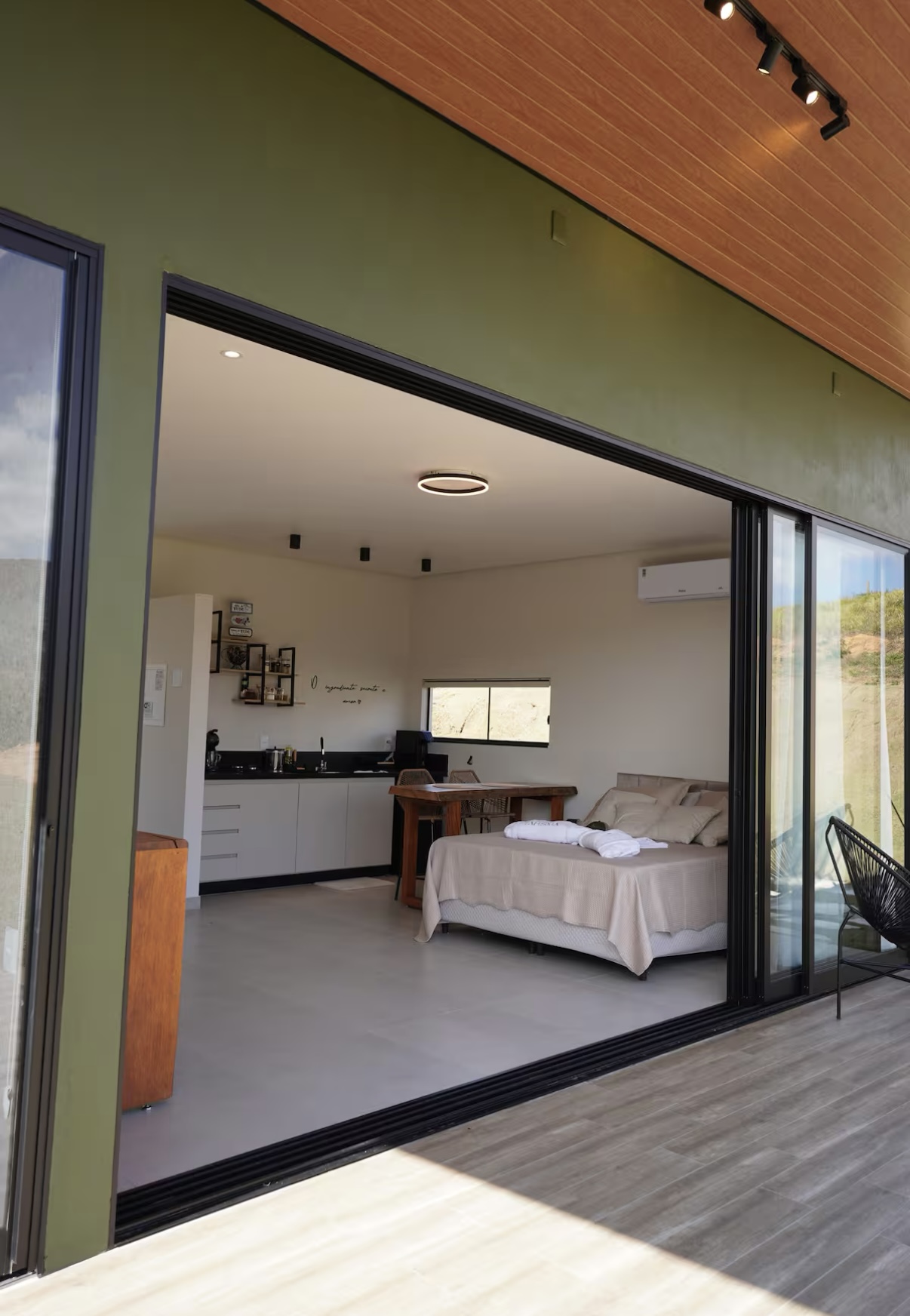 Inserido em um espaço acolhedor, o chalé é ideal para casais que buscam momentos de tranquilidade e conexão. Dentro da fazenda Talismã, o hóspede ainda pode conhecer a produção artesanal de queijos e doces locais, tornando a estadia ainda mais especial e autêntica.