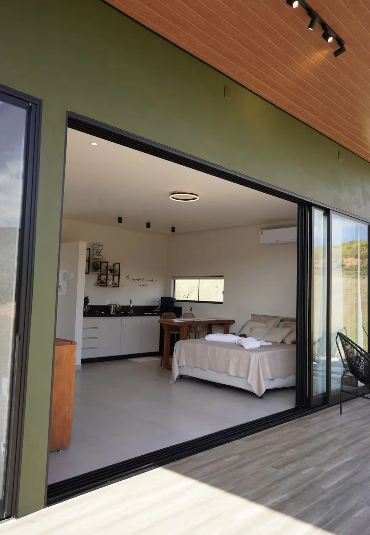 O Chalé Talismã proporciona uma experiência de aconchego e bem-estar em meio à natureza, com destaque para a vista deslumbrante que emoldura o cenário como um quadro. O ambiente integrado reúne cama de casal, cozinha equipada, smart TV, hidromassagem, área de churrasco e espaço com fogueira, criando o equilíbrio perfeito entre conforto e charme rústico.