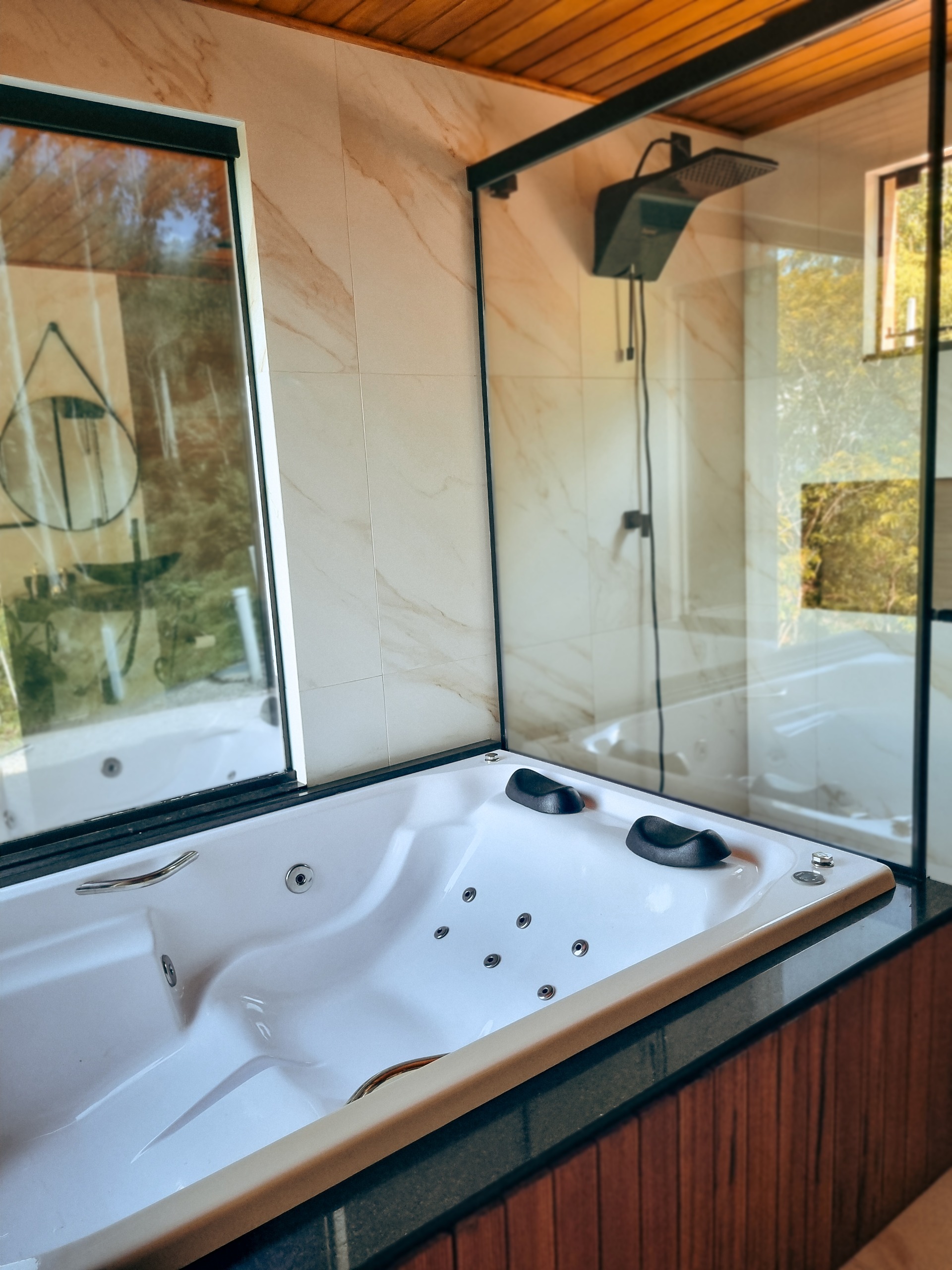 Ar condicionado Secador de cabelo TV a cabo / Smart TV Jacuzzi / Ofurô / Banheira Coberta Frigobar Lareira Máquina de Café Enxoval de Luxo (+ Roupão e Pantufa) Sauna Cozinha Estação de trabalho (mesa e cadeira) Piscina Aquecida ou climatizada Borda Infinita Coberta
