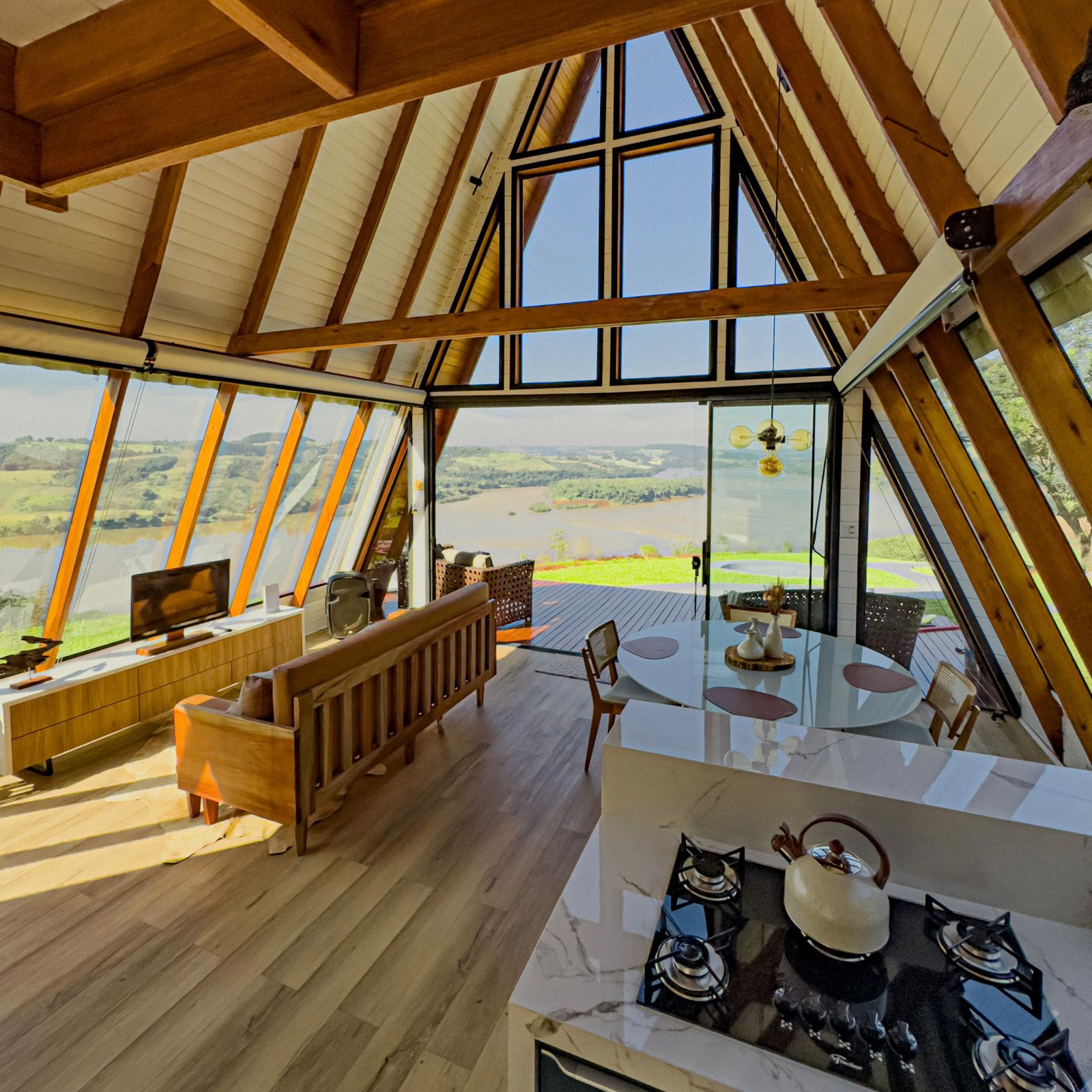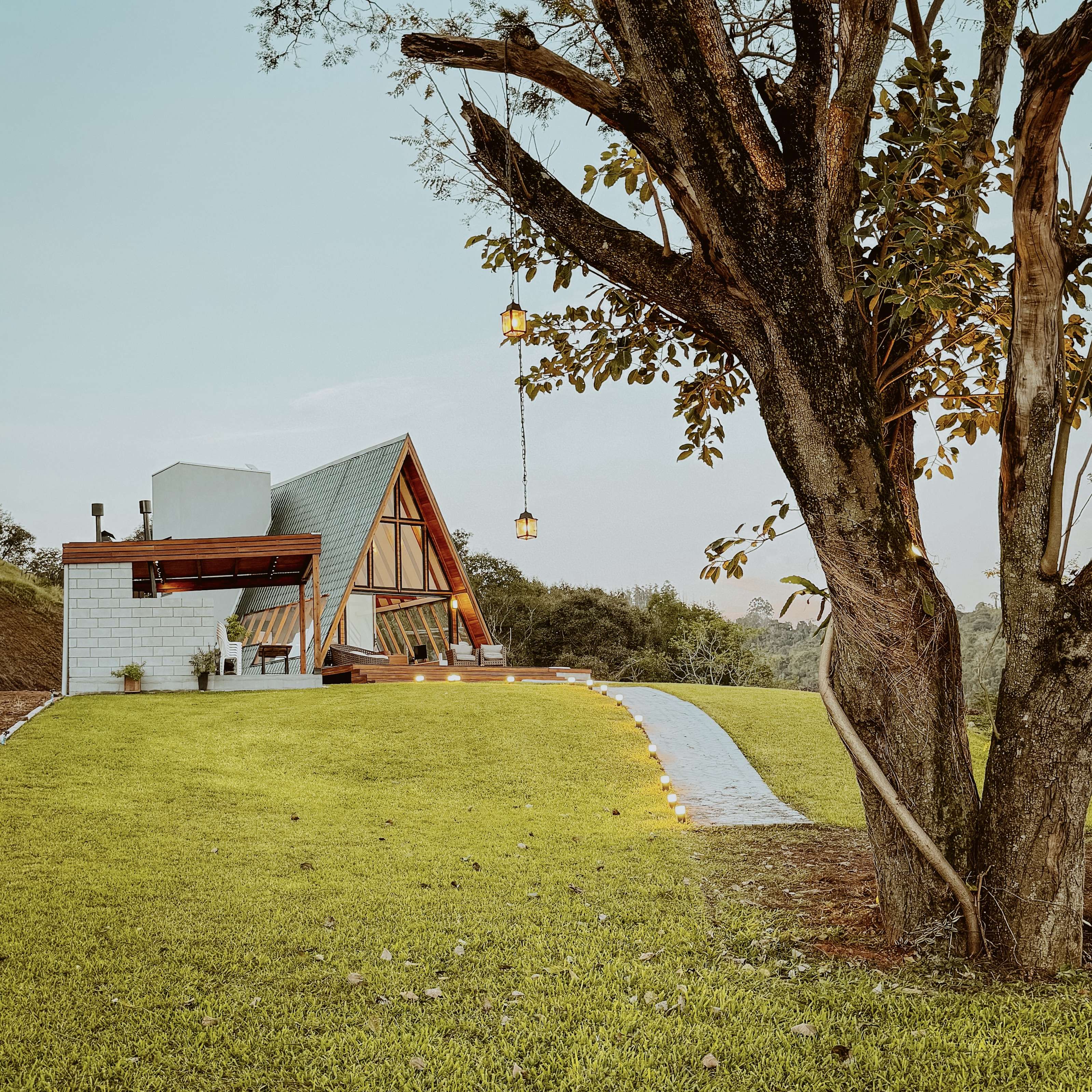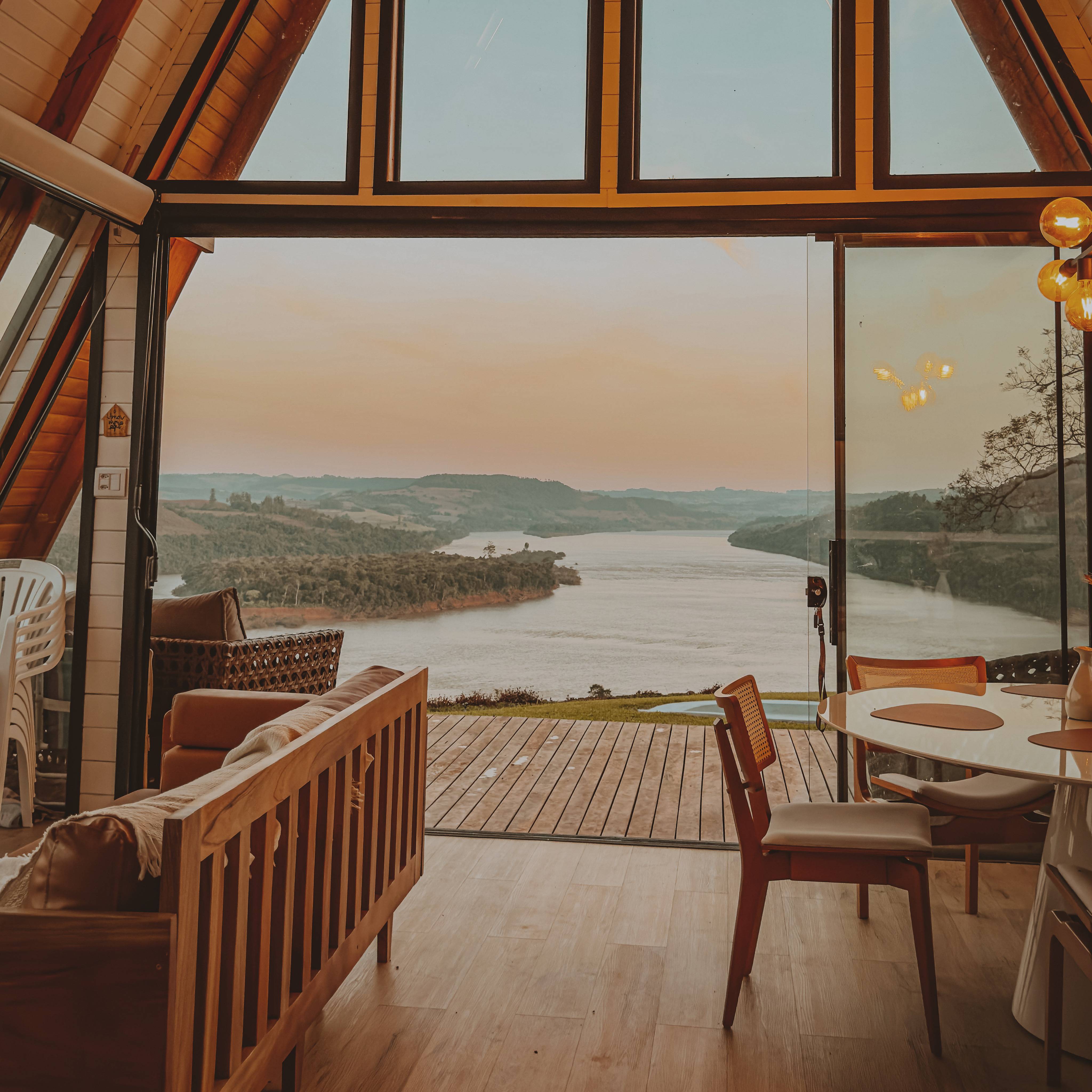 O Chalé da Árvore, localizado em Palmitos, Santa Catarina, oferece um refúgio acolhedor com vista espetacular para o Rio Uruguai. Cercado pela natureza e em um ambiente tranquilo, o chalé garante privacidade e segurança. Com dois quartos equipados com camas queen, dois banheiros espaçosos, uma cozinha completa e uma sala de estar com grandes janelas de vidro, é possível desfrutar de uma vista deslumbrante do rio. A área externa conta com uma charmosa lareira, espaço gourmet com churrasqueira, forno de pizza e fogão a lenha, além de hidromassagem ao ar livre para momentos de relaxamento. A internet via satélite Starlink garante conectividade, permitindo que o conforto se combine com a tranquilidade do lugar.