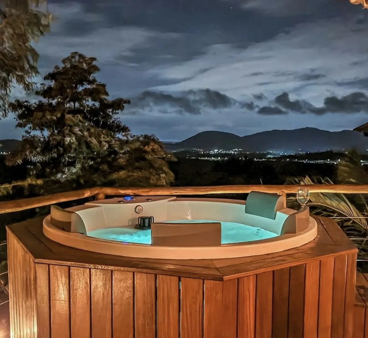 Ar condicionado Secador de cabelo TV a cabo / Smart TV Jacuzzi / Ofurô / Banheira Coberta Frigobar Lareira Máquina de Café Enxoval de Luxo (+ Roupão e Pantufa) Sauna Cozinha Estação de trabalho (mesa e cadeira) Piscina Aquecida ou climatizada Borda Infinita Coberta