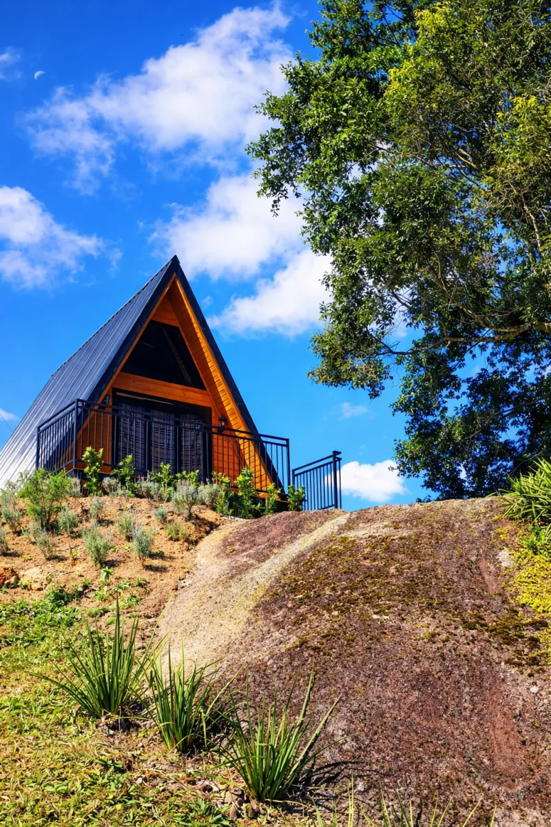 O Chalé da Pedra é o refúgio perfeito para quem busca tranquilidade e aconchego em meio à natureza. Com uma vista privilegiada das montanhas, da cidade e da charmosa Serra do Corvo Branco, o chalé proporciona cenários deslumbrantes — especialmente ao entardecer, quando o pôr do sol transforma a paisagem em uma verdadeira pintura. É o lugar ideal para relaxar, desacelerar e se reconectar com a beleza natural ao redor.