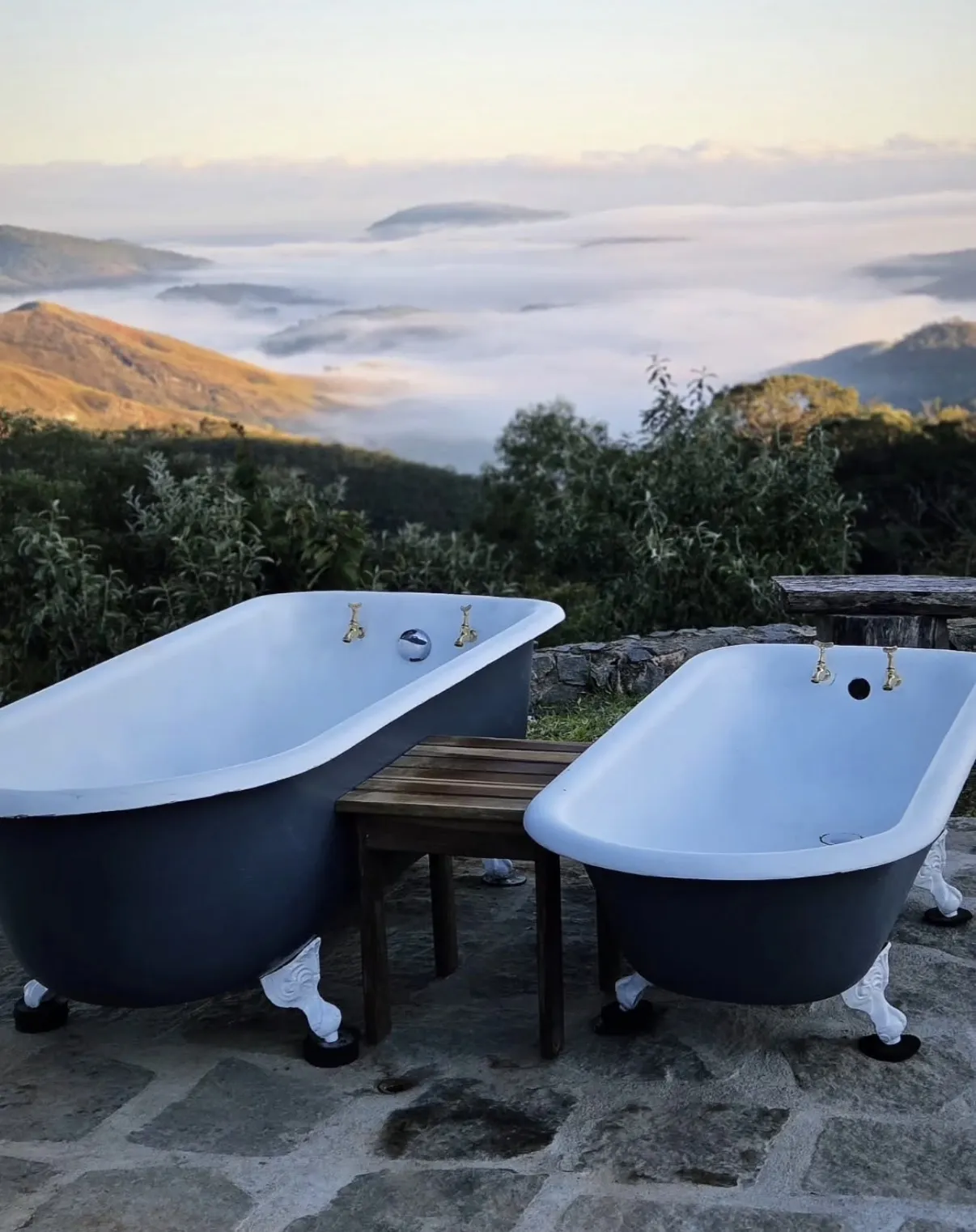 Distribuído em dois pavimentos, o chalé conta com uma suíte, um quarto de casal e um quarto de solteiro no andar superior, enquanto o térreo reúne sala integrada à cozinha, lavabo, varanda e piscina natural abastecida por água de nascente. O espaço dispõe de aquecimento a gás nos chuveiros e estrutura pensada para conforto em meio à natureza, mantendo o equilíbrio entre rusticidade e funcionalidade, em um refúgio seguro e reservado para estadias tranquilas e autênticas.
