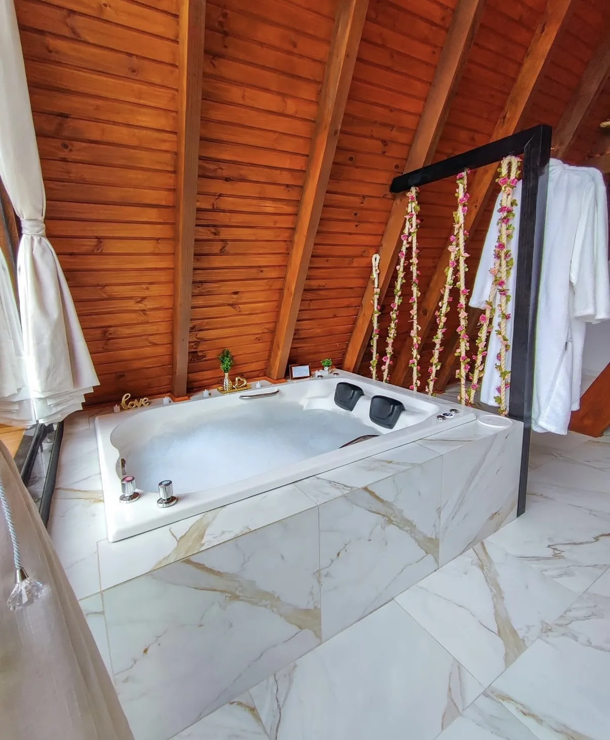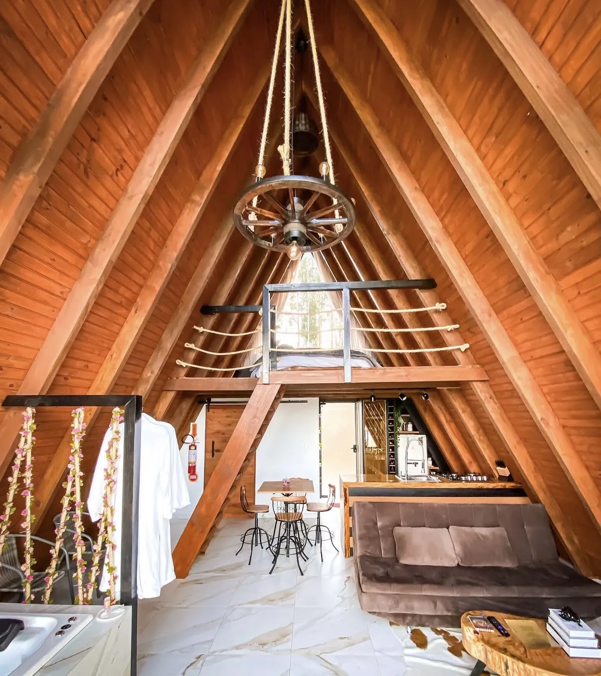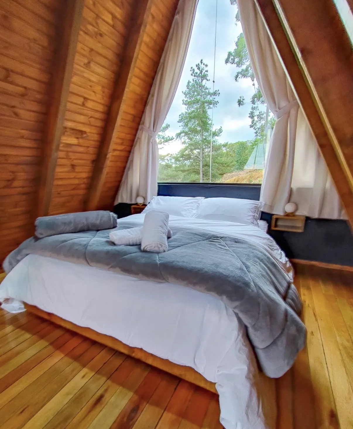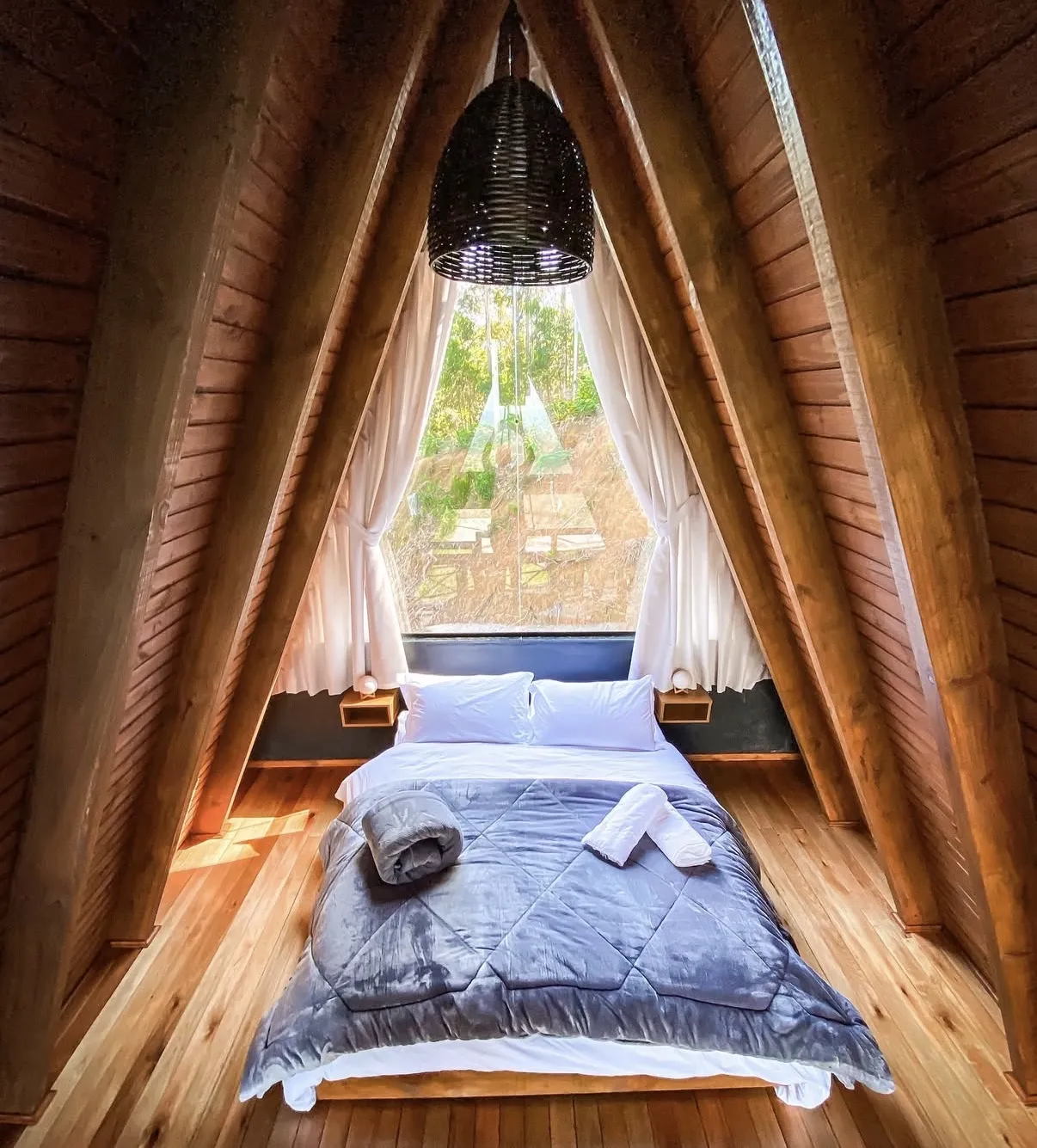 O local é perfeito para quem procura um ambiente aconchegante, uma vista de tirar o fôlego e deseja curtir um lugar com muita paz e ar puro. A hospedagem conta com uma incrível hidromassagem com cromoterapia, ideal para relaxar e ter momentos únicos e inesquecíveis. Além disso, possui uma lareira e fogo de chão para os hóspedes se aquecerem nos dias mais frios. O local também conta com um balanço do infinito, perfeito para tirar fotos incríveis.