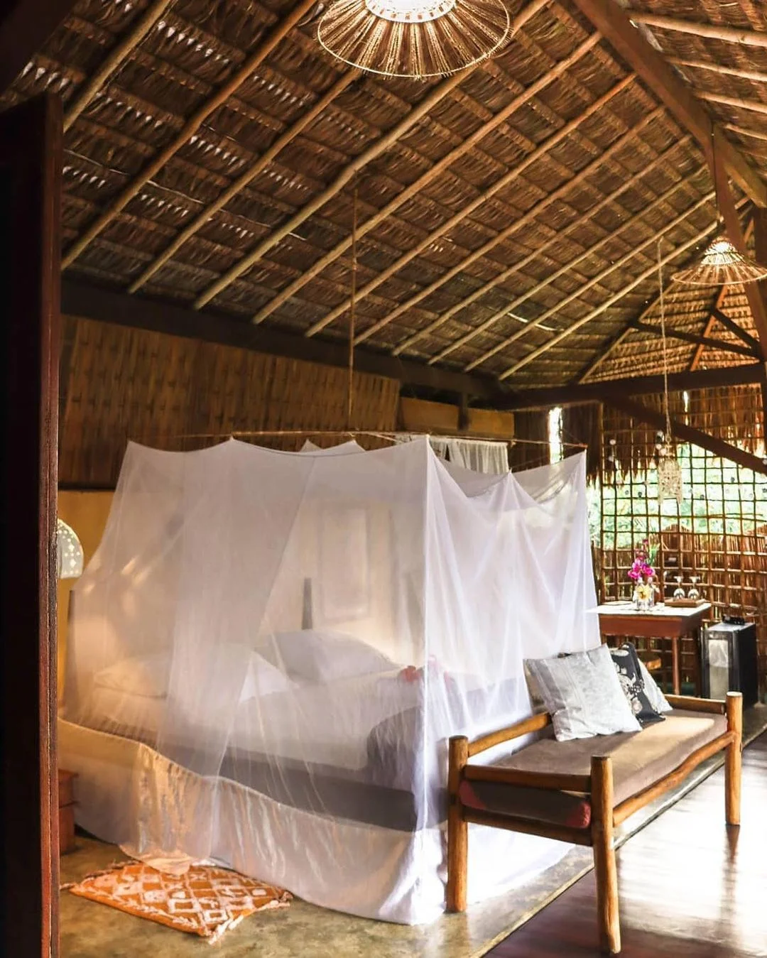 Os quartos são equipados com banheiros privativos, além de todas as amenidades de banho. Têm decks de madeira com uma linda vista e rede para relaxar.