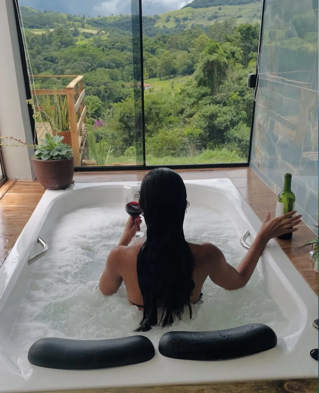 Nosso chalé combina conforto, tranquilidade e natureza para uma estadia inesquecível. Totalmente equipado, dispõe de banheira de hidromassagem, ar-condicionado split, cozinha completa (cooktop, air fryer, geladeira e utensílios), cama queen com roupas de cama e banho, sofá-cama queen, TV de 50' e Wi-Fi. A área externa oferece churrasqueira, fogo de chão e um deck privativo com vista deslumbrante. Ideal para relaxar e aproveitar momentos especiais em meio à natureza!