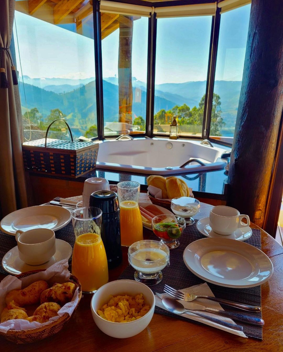 O café da manhã é personalizado e servido no conforto do chalé, incluso na diária!