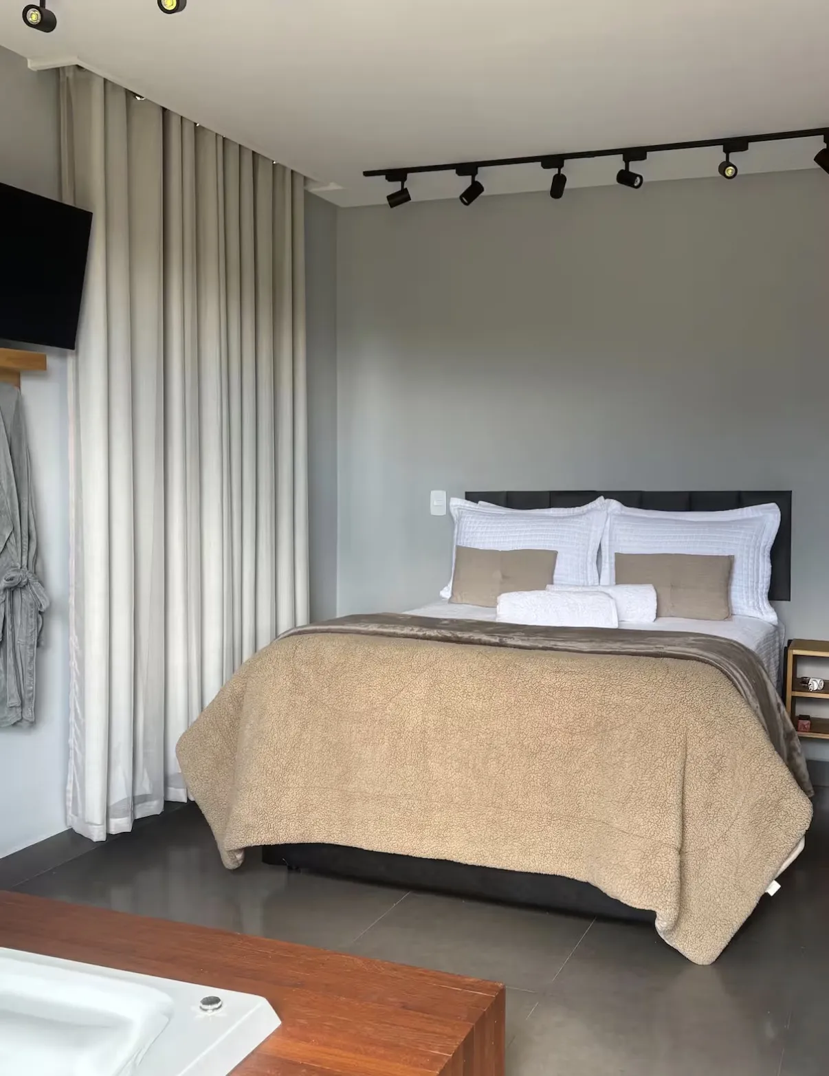 Ar condicionado Secador de cabelo TV a cabo / Smart TV Jacuzzi / Ofurô / Banheira Coberta Frigobar Lareira Máquina de Café Enxoval de Luxo (+ Roupão e Pantufa) Sauna Cozinha Estação de trabalho (mesa e cadeira) Piscina Aquecida ou climatizada Borda Infinita Coberta