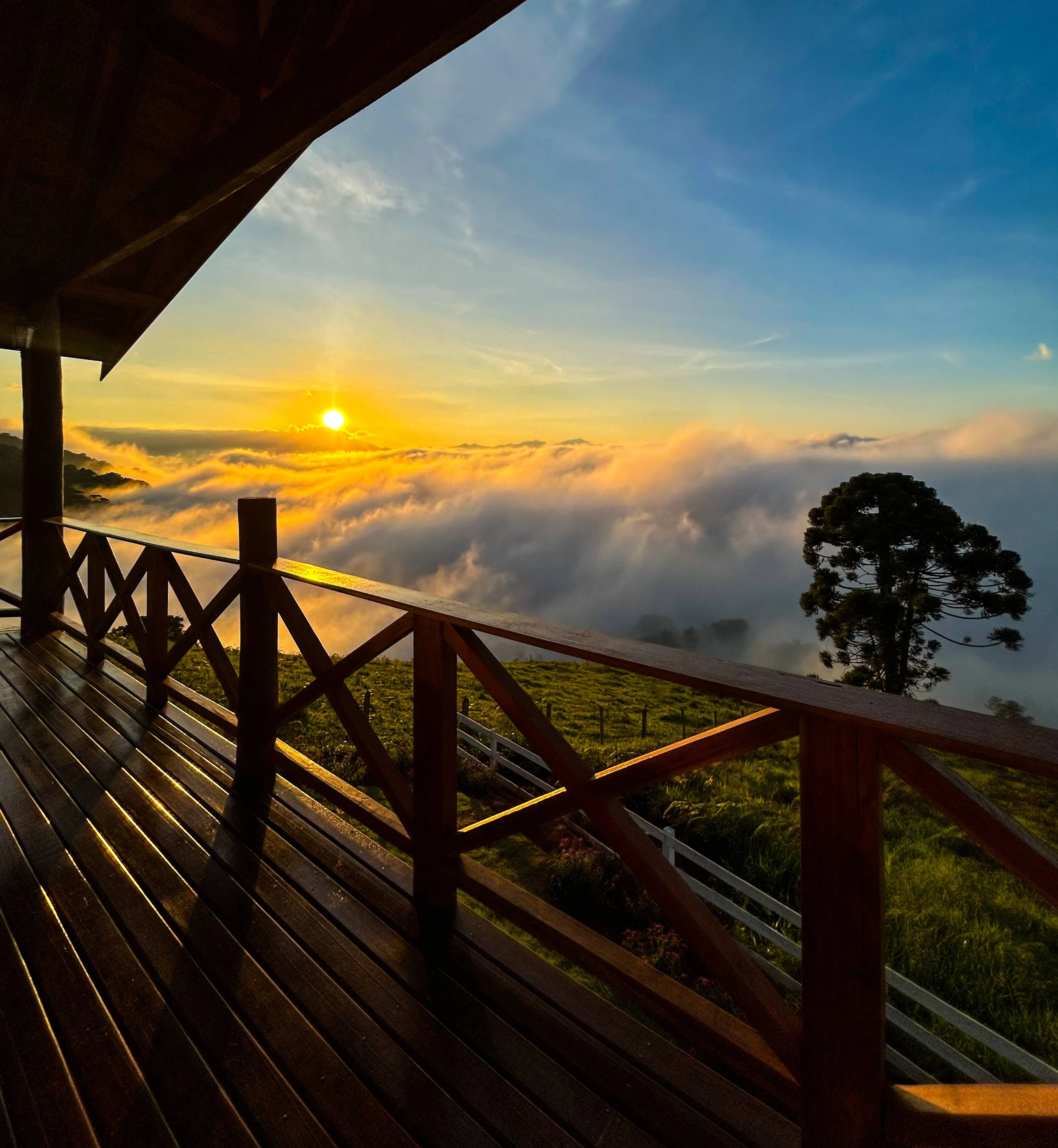 O café da manhã é servido no chalé, totalmente privado, onde os hóspedes poderão desfrutar de um delicioso cardápio apreciando a vista.