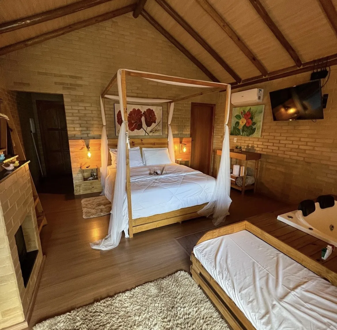São 14 acomodações, a menor com capacidade para 2 pessoas e a maior, 4 pessoas