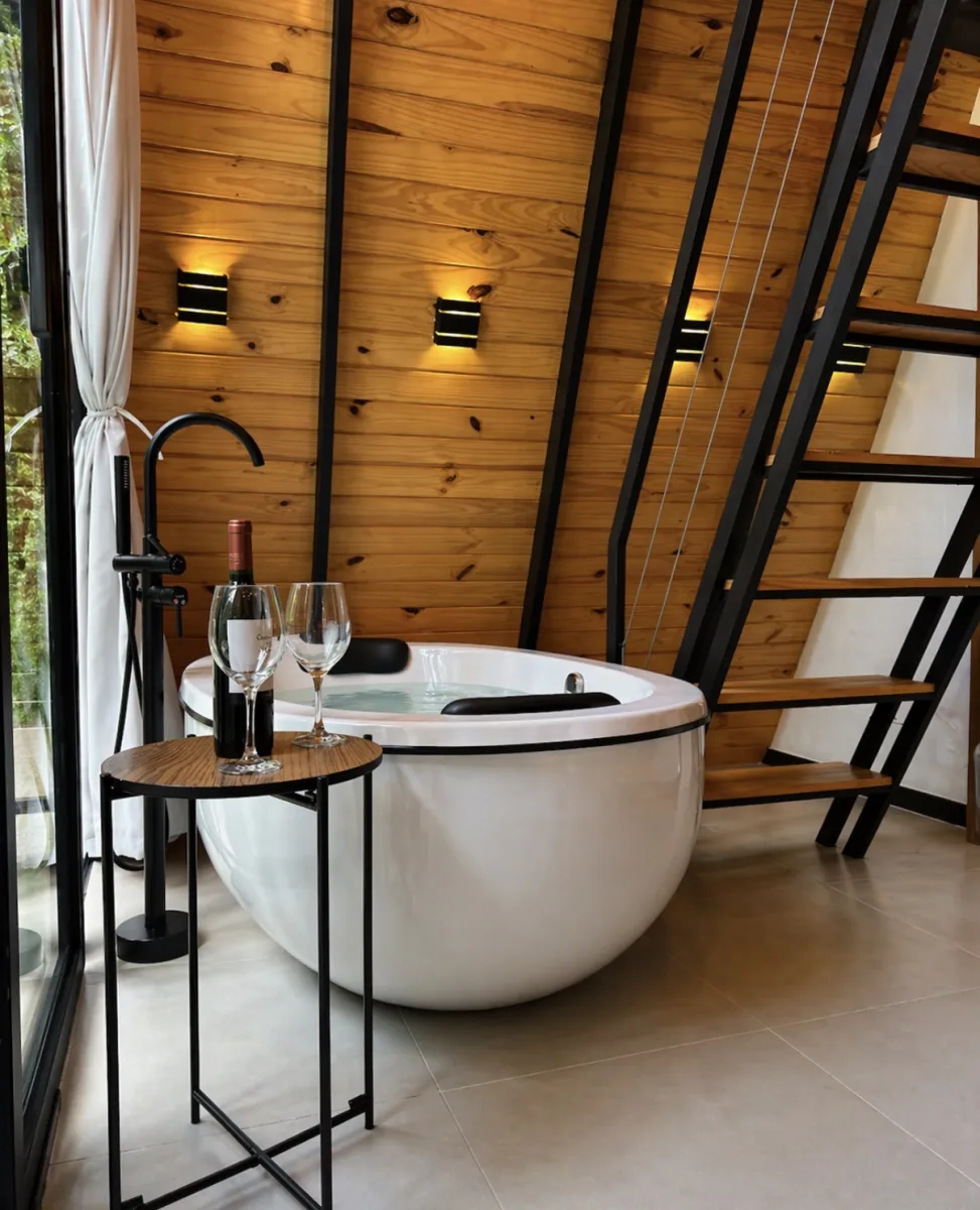 Ar condicionado Secador de cabelo TV a cabo / Smart TV Jacuzzi / Ofurô / Banheira Coberta Frigobar Lareira Máquina de Café Enxoval de Luxo (+ Roupão e Pantufa) Sauna Cozinha Estação de trabalho (mesa e cadeira) Piscina Aquecida ou climatizada Borda Infinita Coberta