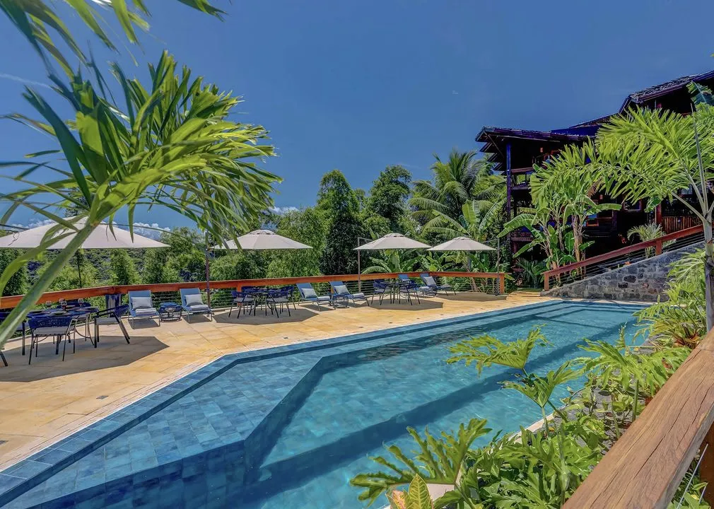 Localizado no alto de um morro com vista panorâmica da Praia do Pontal em Itacaré, Costa do Cacau, o local oferece uma vista privilegiada do Oceano Atlântico e do Rio de Contas. Criado para proporcionar bem-estar, as suítes e bangalôs possuem varanda com vista para o mar e jardim, todos equipados com frigobar, enxoval de luxo, camas boxspring modernas, smart TV, ar condicionado split silencioso, piscina, itens cosméticos de cacau e chocolate inclusos, experiências gastronômicas e de bem-estar, além de beach tênis.