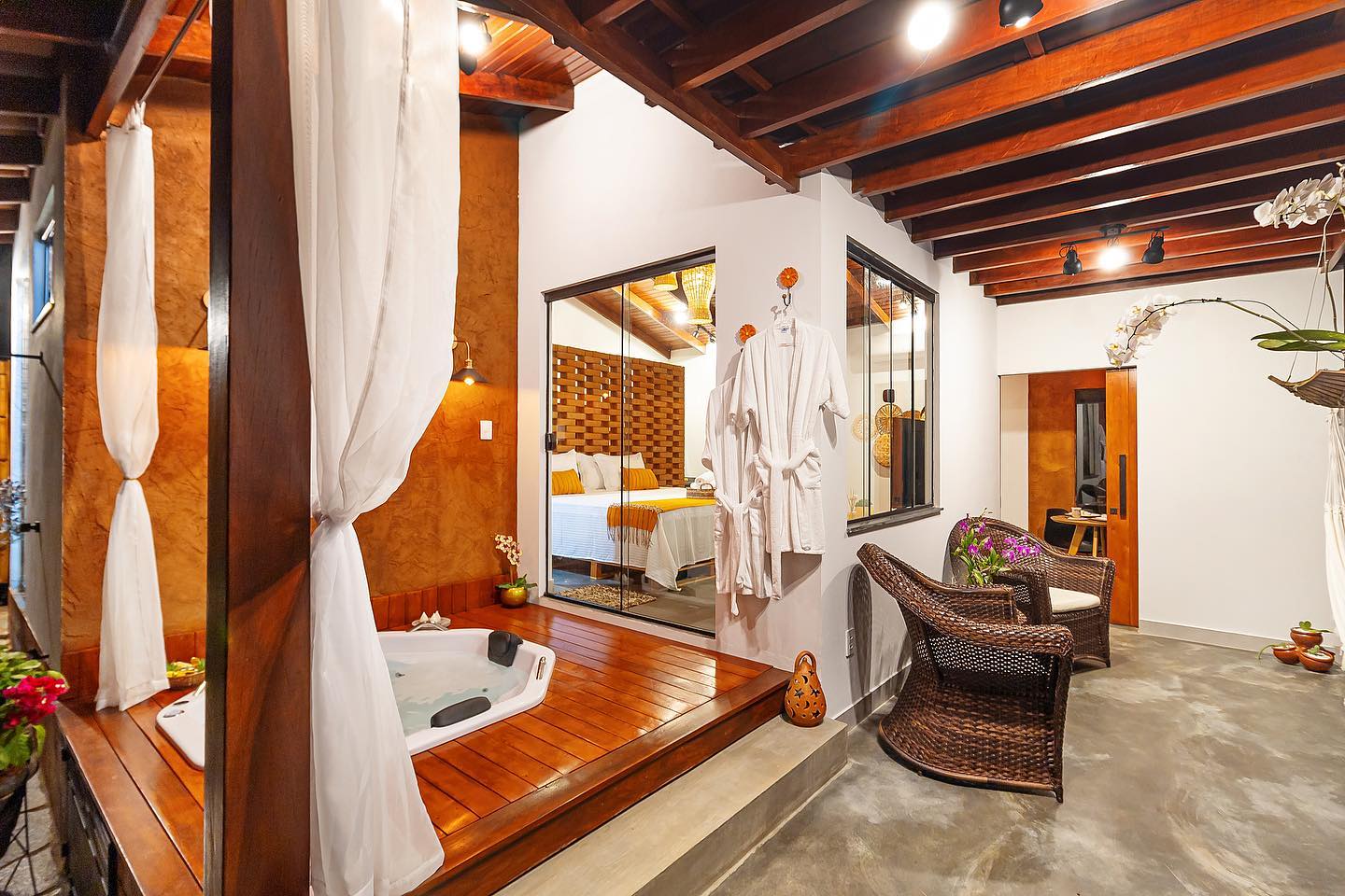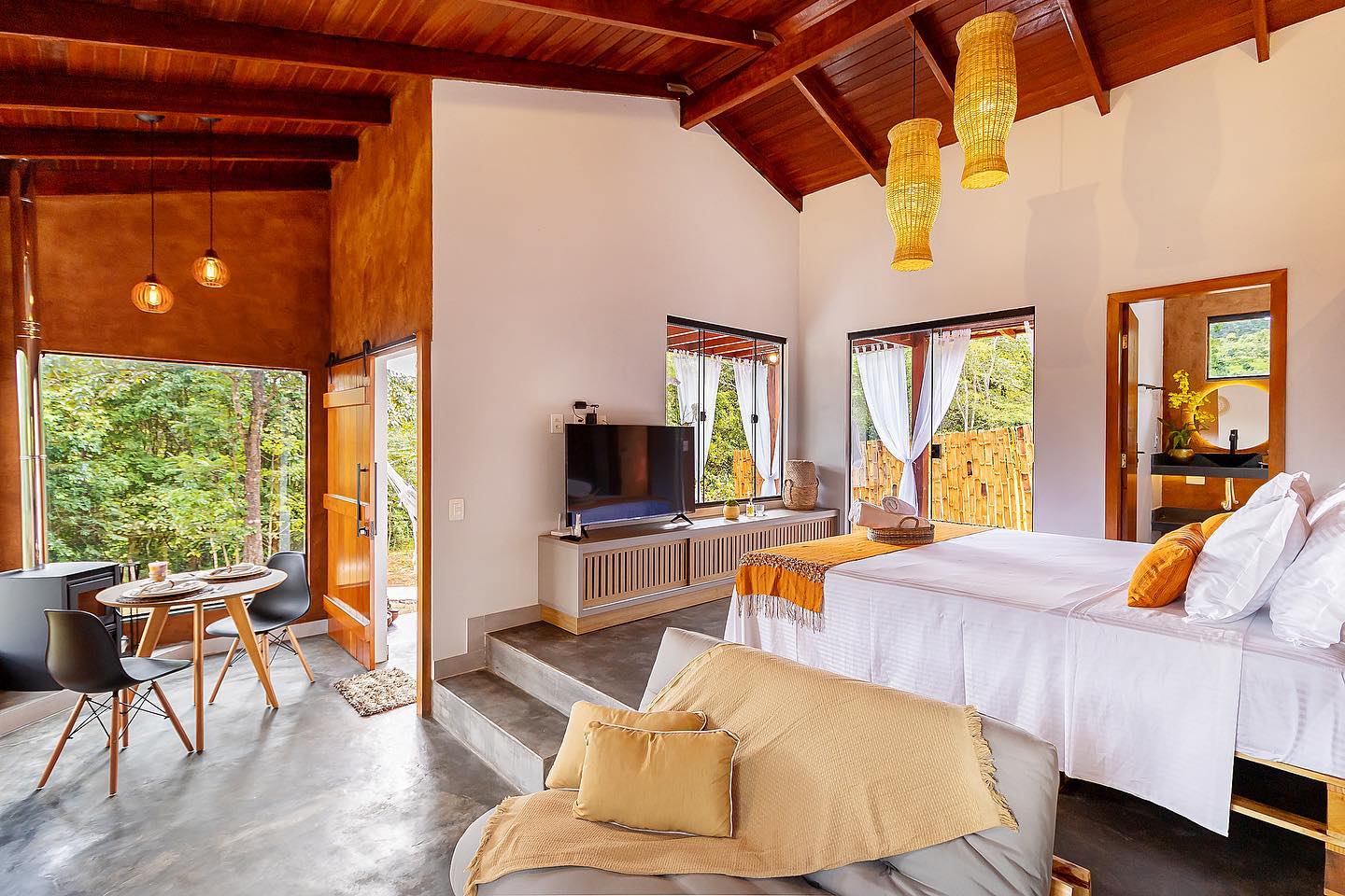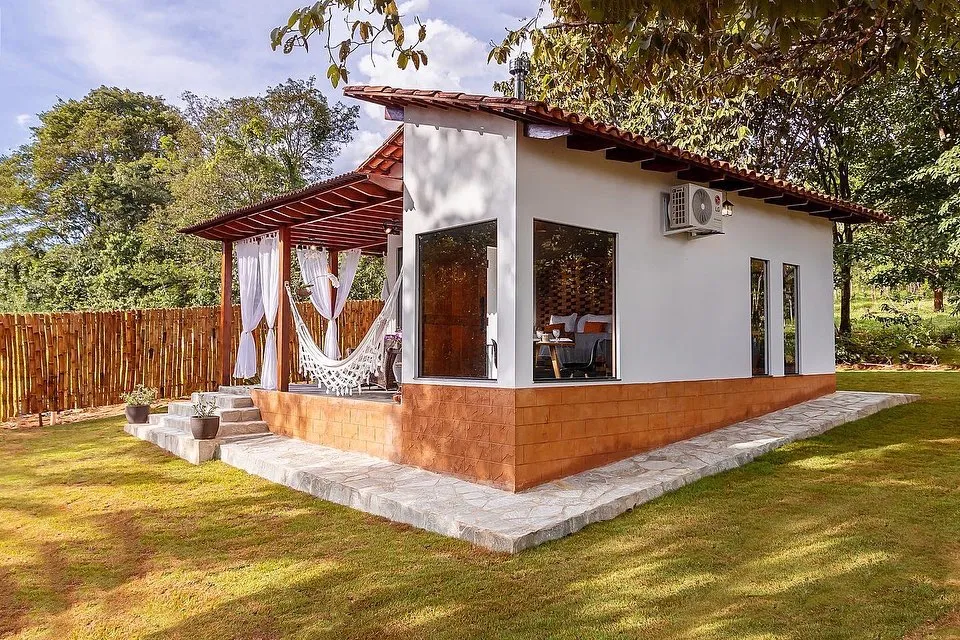 Este lugar único tem um estilo próprio. O Bangalô da Lua é o local ideal para vivenciar momentos incríveis em casal. A cabana traz consigo tranquilidade e um ambiente aconchegante em meio à natureza. Possui ar condicionado, cozinha completa, área gourmet e uma passagem linda para desfrutar na banheira de hidromassagem.