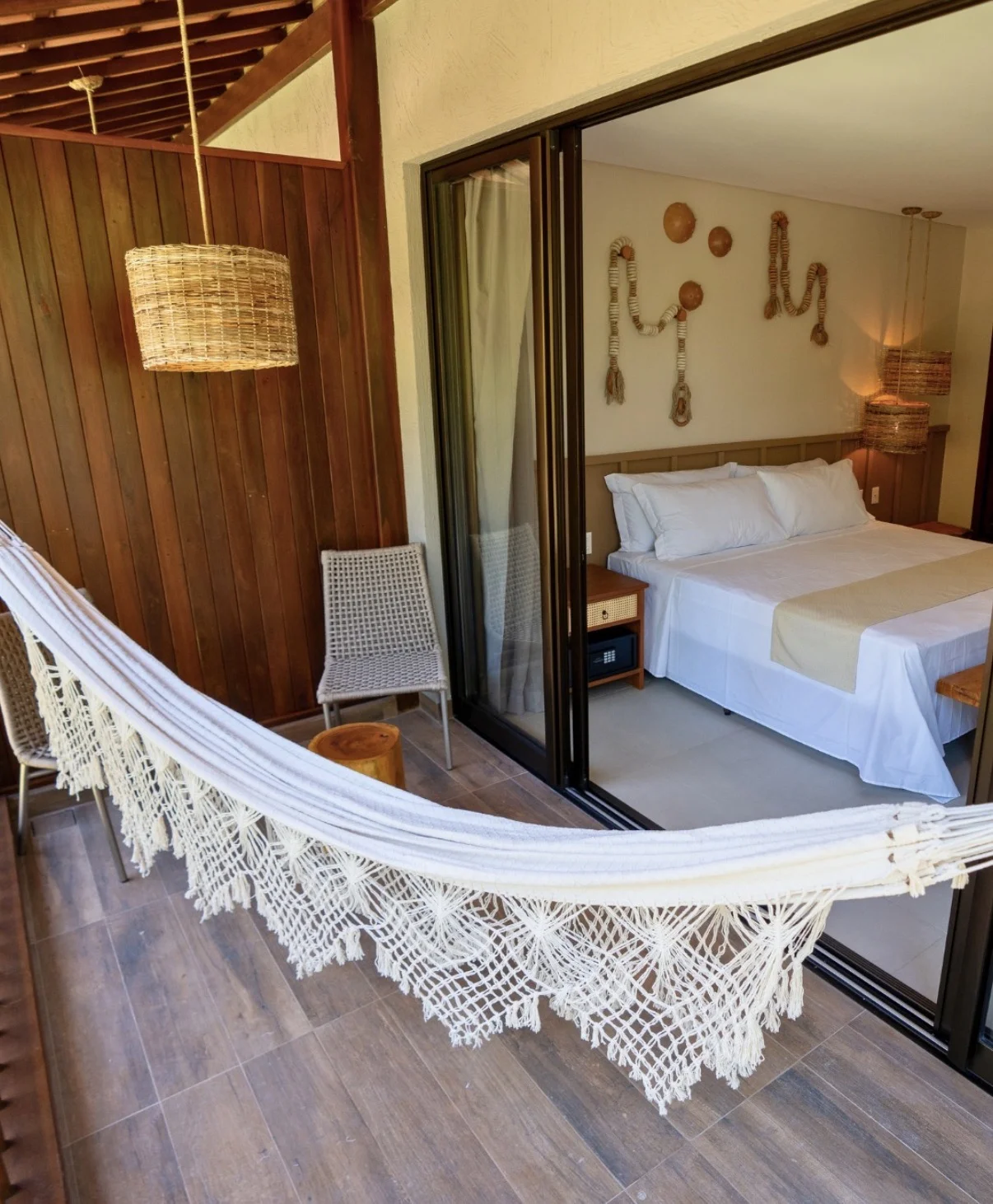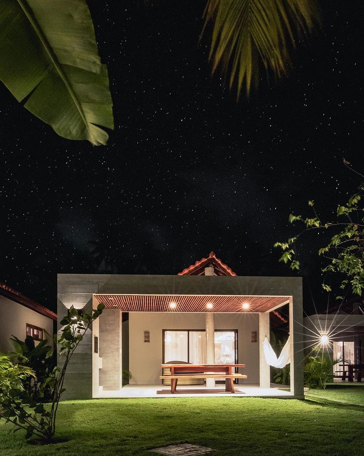 De frente para o jardim, os bangalôs são totalmente equipados para que os hóspedes possam desfrutar dos ambientes se sentindo em casa. Todas as acomodações dispõem de churrasqueira e garagem privativa, varanda com rede, chuveirão, banheiro com ducha quente, quarto, suíte com cama queen, TV, Wi-Fi, ar-condicionado split. O interior é mobiliado e a cozinha completa equipada com eletrodomésticos e utensílios.