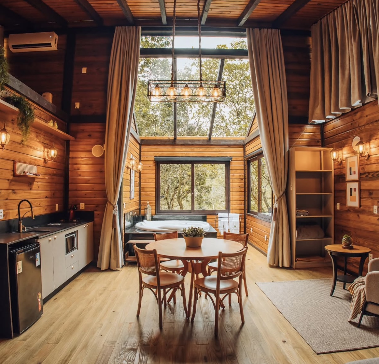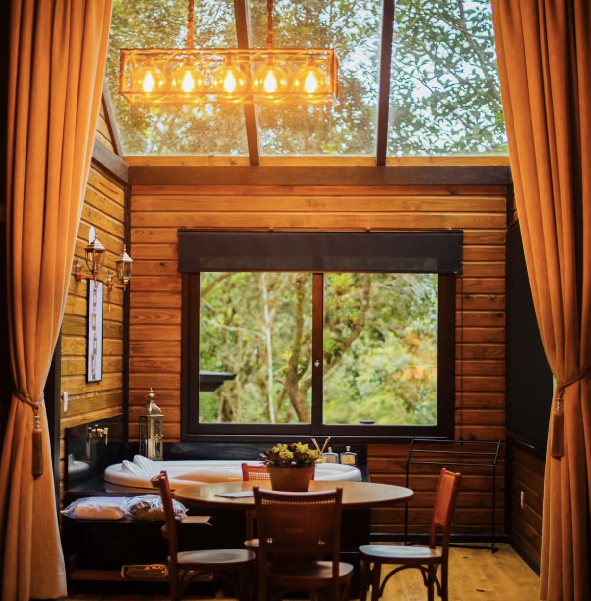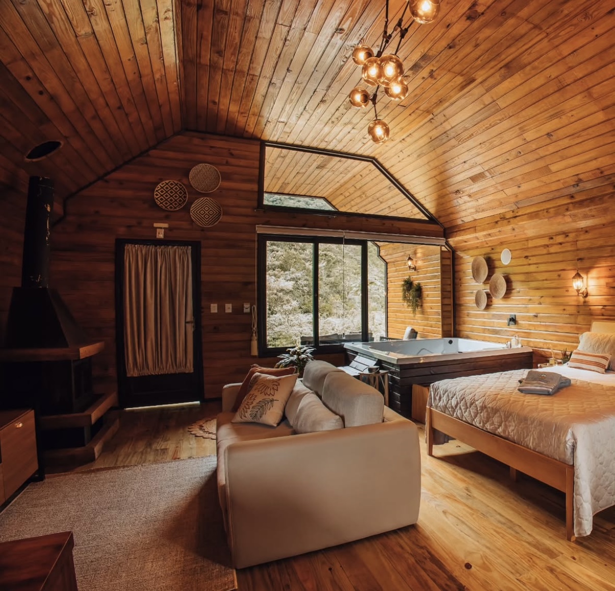 Ar condicionado Secador de cabelo TV a cabo / Smart TV Jacuzzi / Ofurô / Banheira Coberta Frigobar Lareira Máquina de Café Enxoval de Luxo (+ Roupão e Pantufa) Sauna Cozinha Estação de trabalho (mesa e cadeira) Piscina Aquecida ou climatizada Borda Infinita Coberta