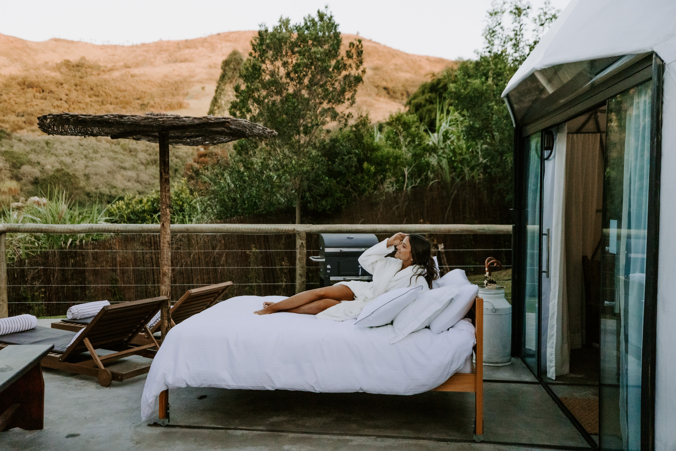 Relaxe na banheira de imersão interna com cromoterapia, experimente a cozinha completa e equipada e aproveite a sala de estar com sofá-cama e projetor. A Tiny possui 2 mezaninos, um com cama de casal e outro com um espaço livre dedicado à meditação e conexão. Na área externa, encontra-se tudo o que é necessário para desfrutar da vista para o morro. Um ofurô que chega a 40 graus e um espaço gourmet com churrasqueira.