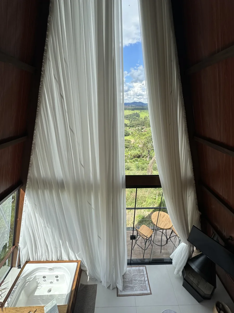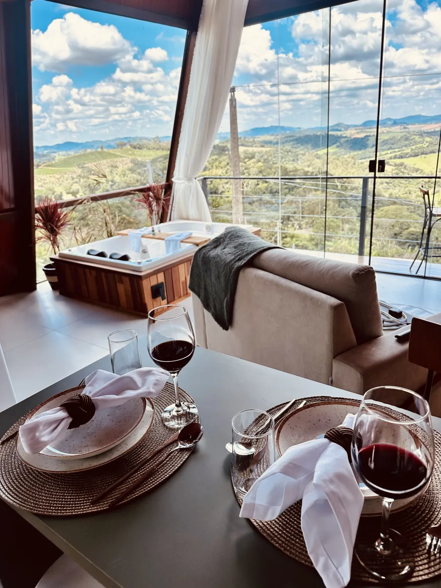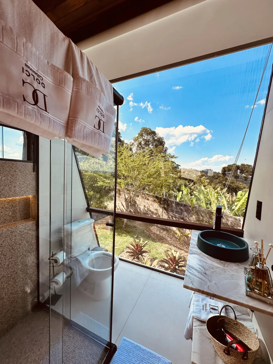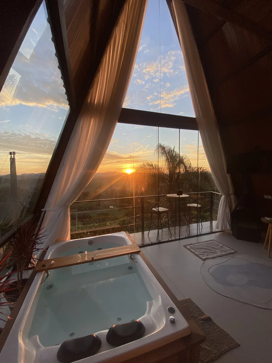 Aproveite a banheira de hidromassagem com cromoterapia, e vista para a natureza através da parede de vidro que cria uma experiência única.