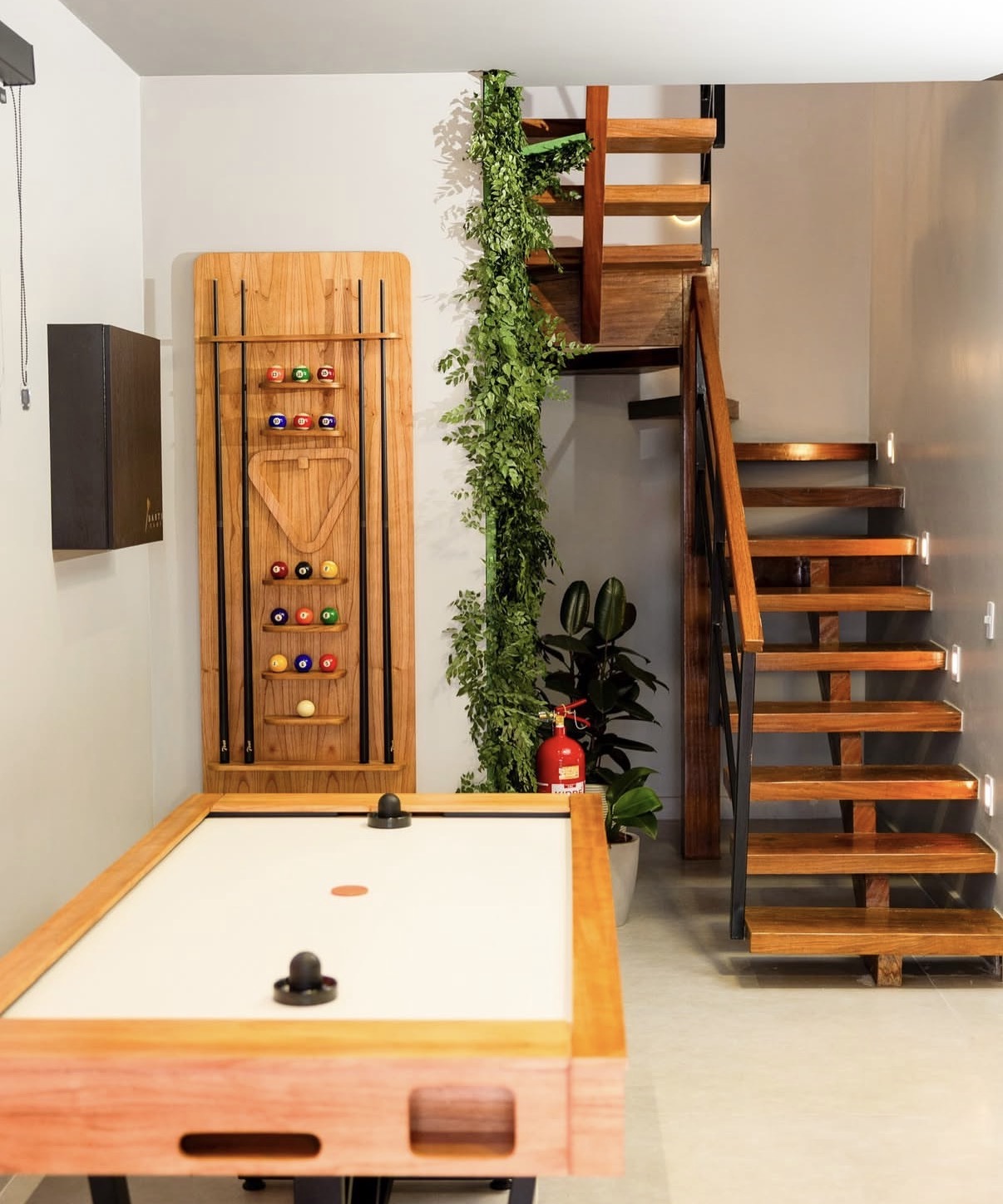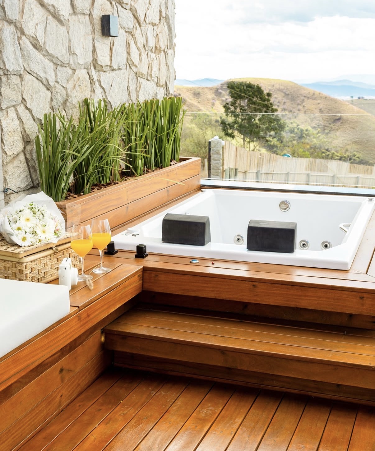 A acomodação dispõe de dormitório com cama de casal, sofá-cama, dois banheiros, climatização, sala de jogos e cinema, além de cozinha completa equipada para preparo de refeições. As áreas externas ampliam a experiência, com deck mobiliado, churrasqueira, lounge com fogueira e hidromassagem ao ar livre, criando o ambiente ideal para apreciar o pôr do sol e viver momentos de tranquilidade, charme e bem-estar.