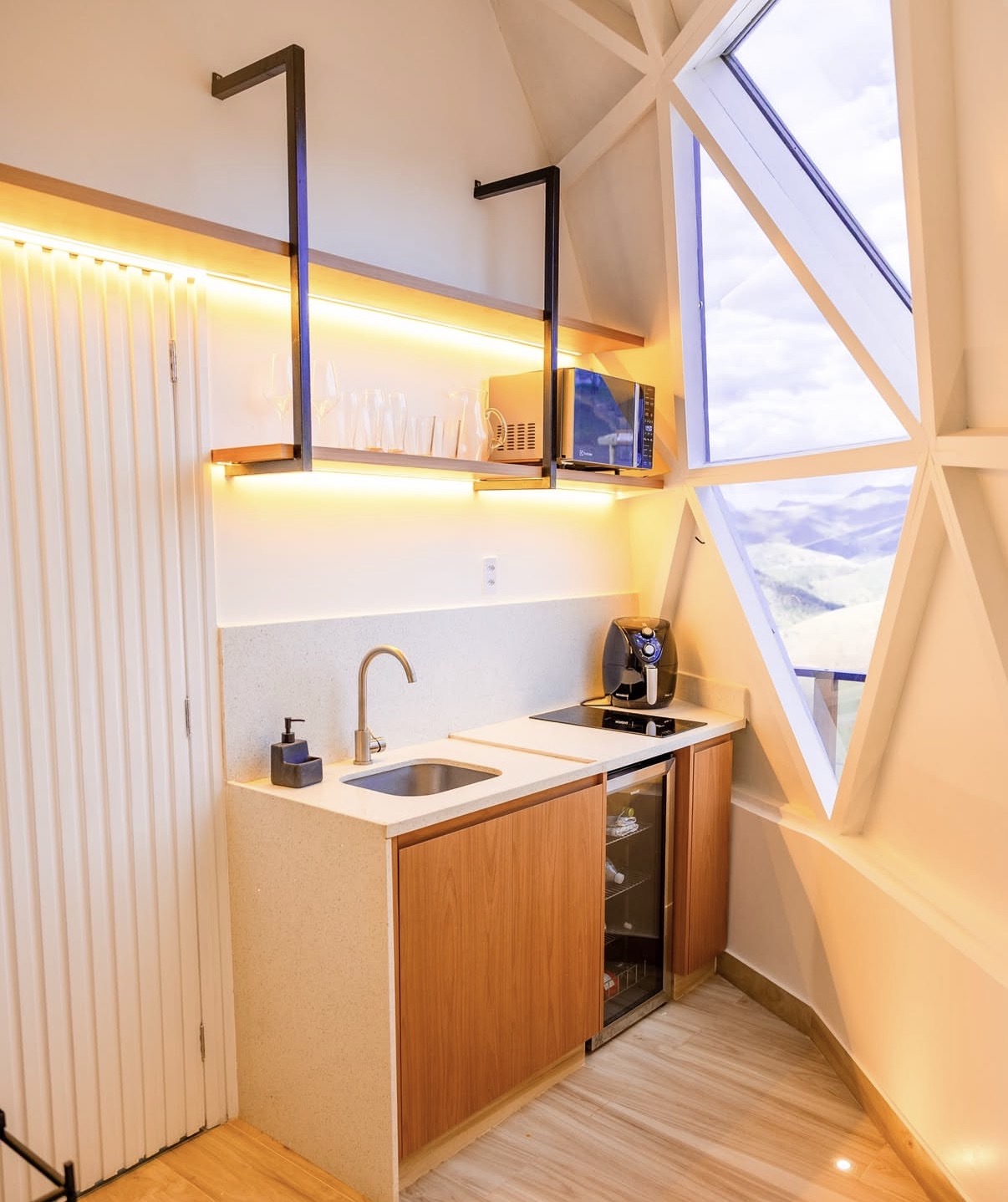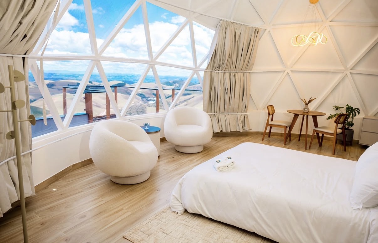 A hospedagem oferece uma experiência singular em meio às montanhas, combinando sofisticação, privacidade e uma atmosfera envolvente de contato com a natureza. A proposta foi pensada para poucos, valorizando exclusividade, conforto e uma vivência sensorial que convida ao descanso e à contemplação em um cenário marcado por paisagens amplas e céu estrelado.