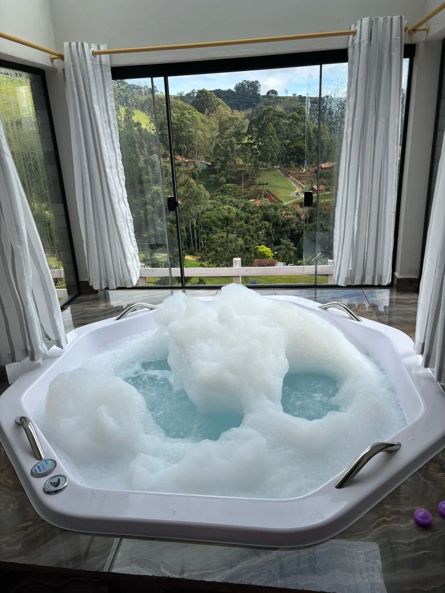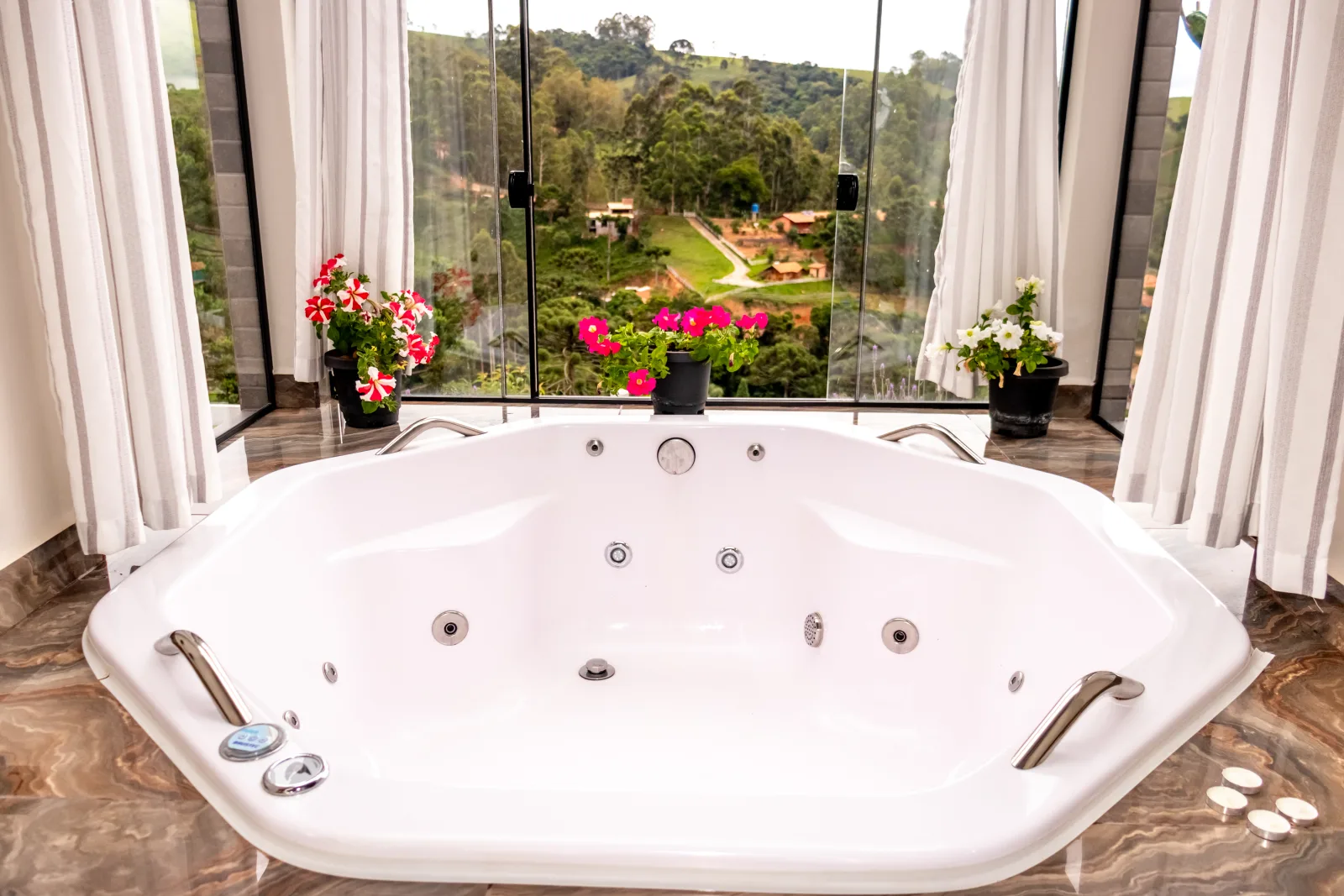 Ar condicionado Secador de cabelo TV a cabo / Smart TV Jacuzzi / Ofurô / Banheira Coberta Frigobar Lareira Máquina de Café Enxoval de Luxo (+ Roupão e Pantufa) Sauna Cozinha Estação de trabalho (mesa e cadeira) Piscina Aquecida ou climatizada Borda Infinita Coberta