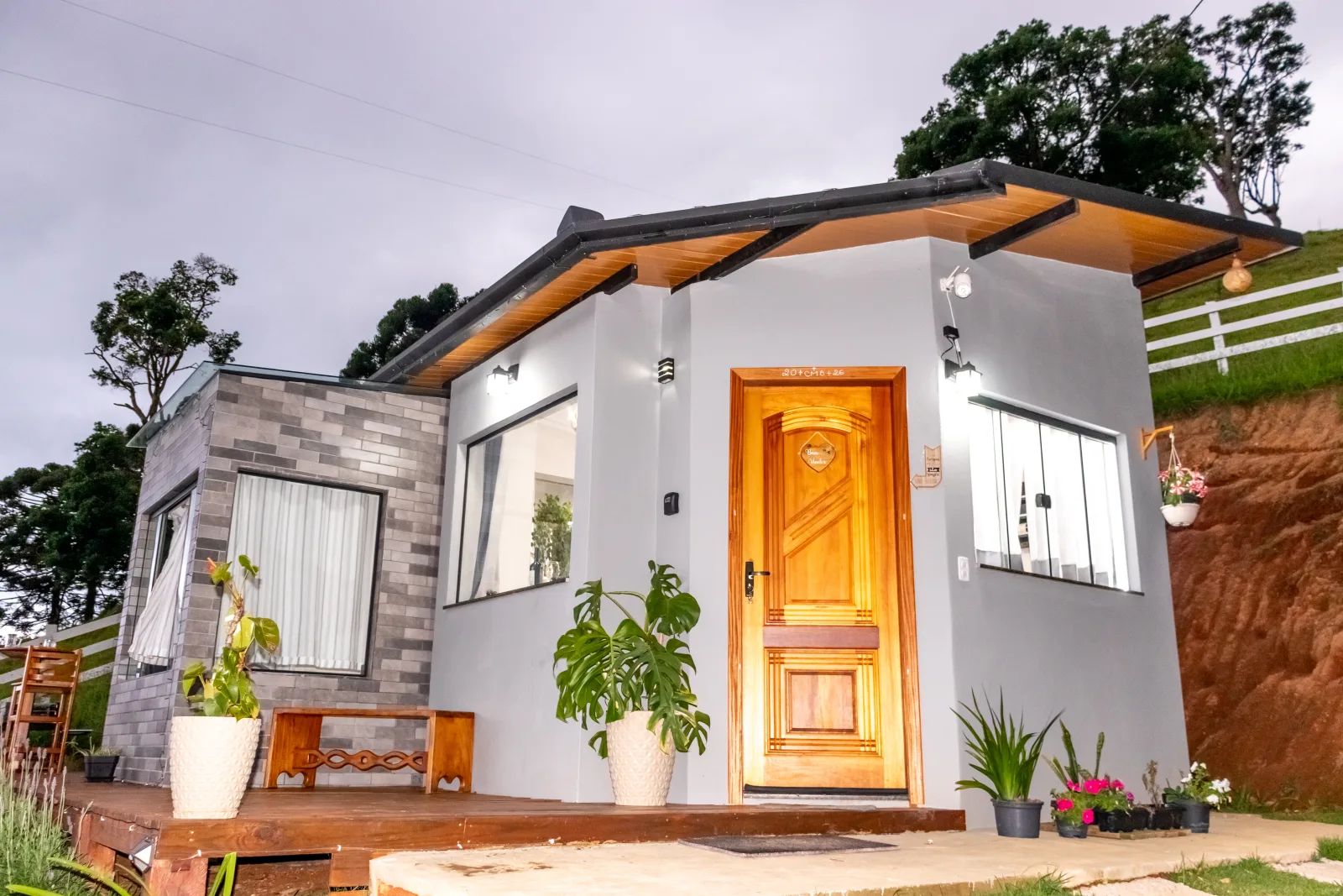 A Elysium Araucária é uma charmosa tiny house cercada pela natureza, perfeita para casais que buscam descanso, privacidade e momentos especiais a dois.