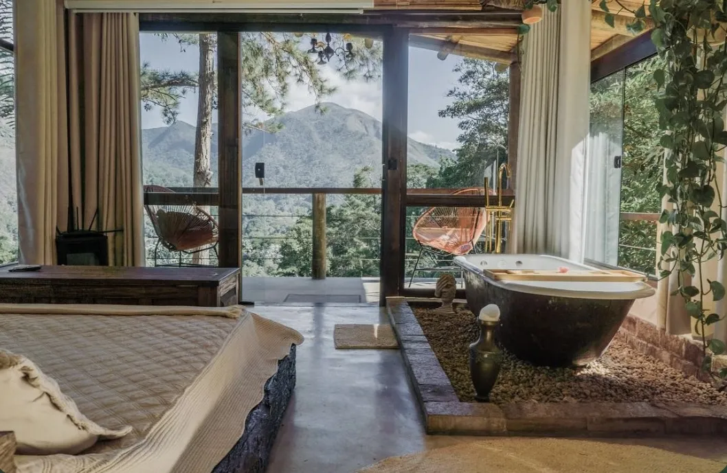 A Encanto oferece o ambiente perfeito para quem busca relaxamento e desconexão da rotina. Situada em meio à exuberante reserva natural de Araras, a propriedade proporciona vistas deslumbrantes da Mata Atlântica, aliando o charme da serra com a tranquilidade do local. Nas proximidades, a cachoeira da Ponte Funda, conhecida por seu formato de coração e sua imponente queda d’água de 40 metros, é uma excelente opção para quem aprecia o turismo ecológico.