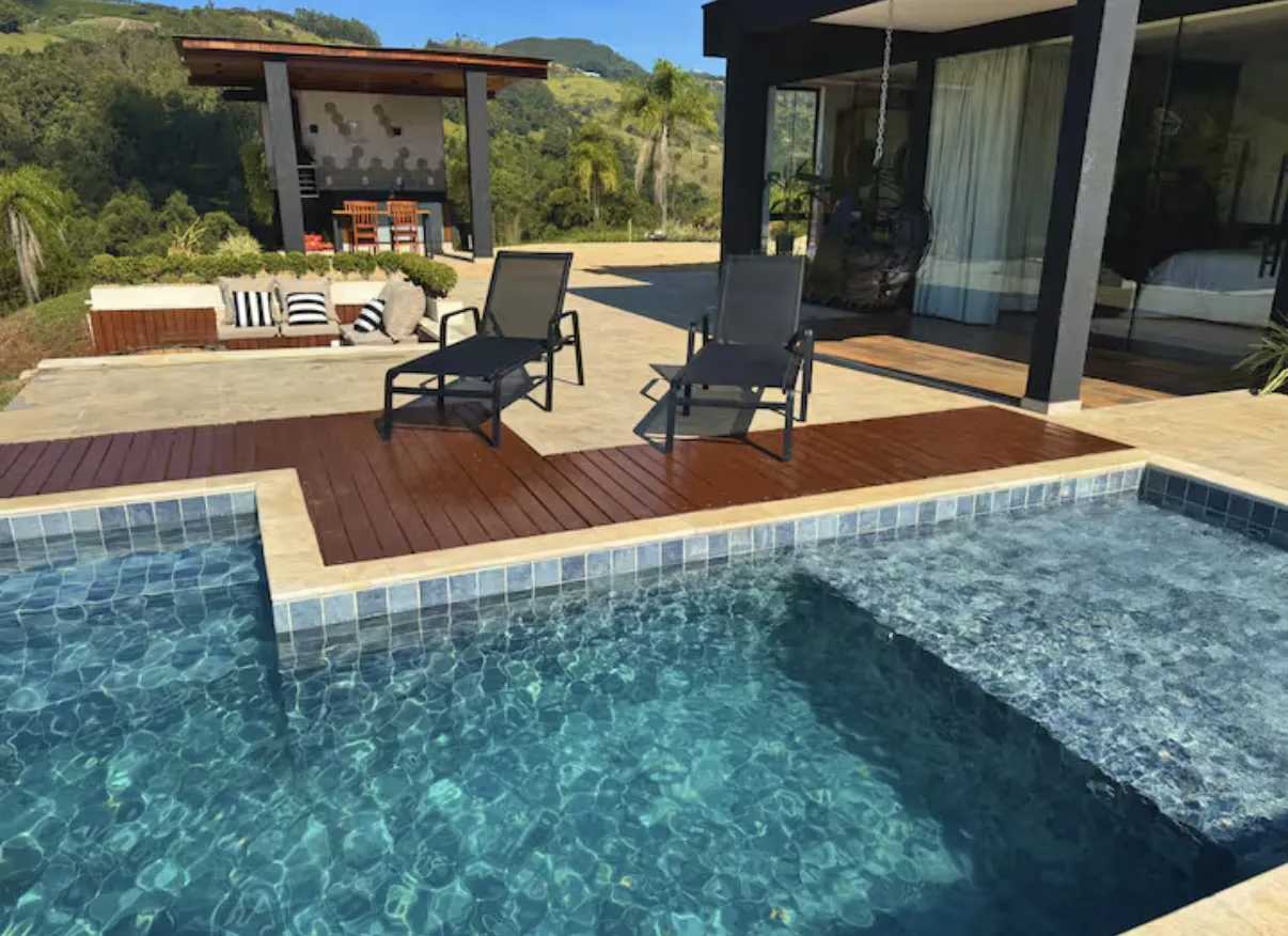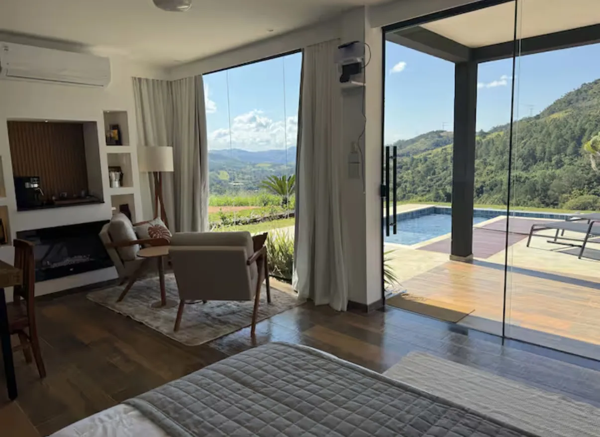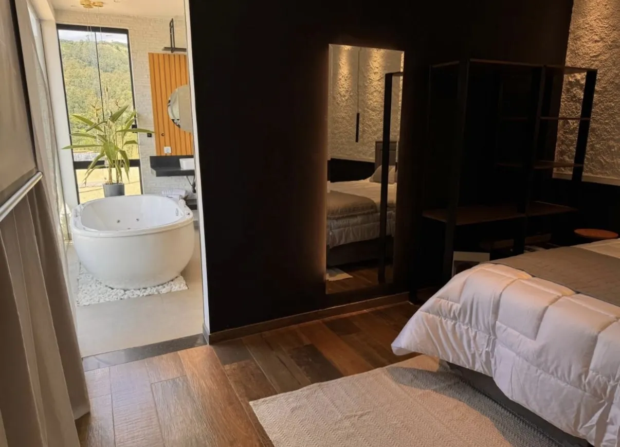 Em meio às montanhas de Serra Negra – SP, esta hospedagem exclusiva oferece uma experiência de alto padrão, ideal para casais que buscam privacidade, conforto e sofisticação. Localizada no Sítio Monte Belo, a acomodação conta com vista panorâmica de 360°, lareiras interna e externa, piscina climatizada, banheira aquecida com hidromassagem e área de churrasco. Cada detalhe foi cuidadosamente pensado para proporcionar momentos inesquecíveis em um ambiente intimista e elegante.