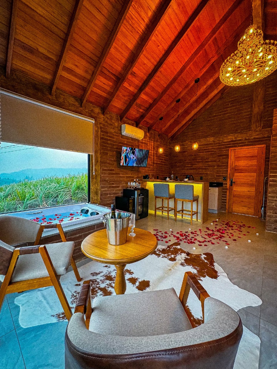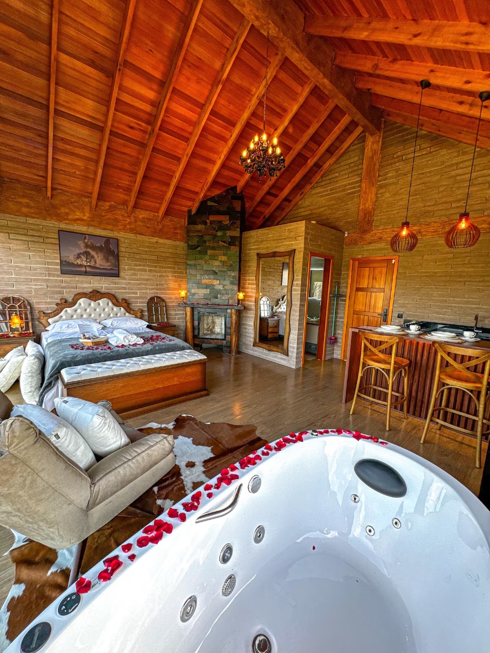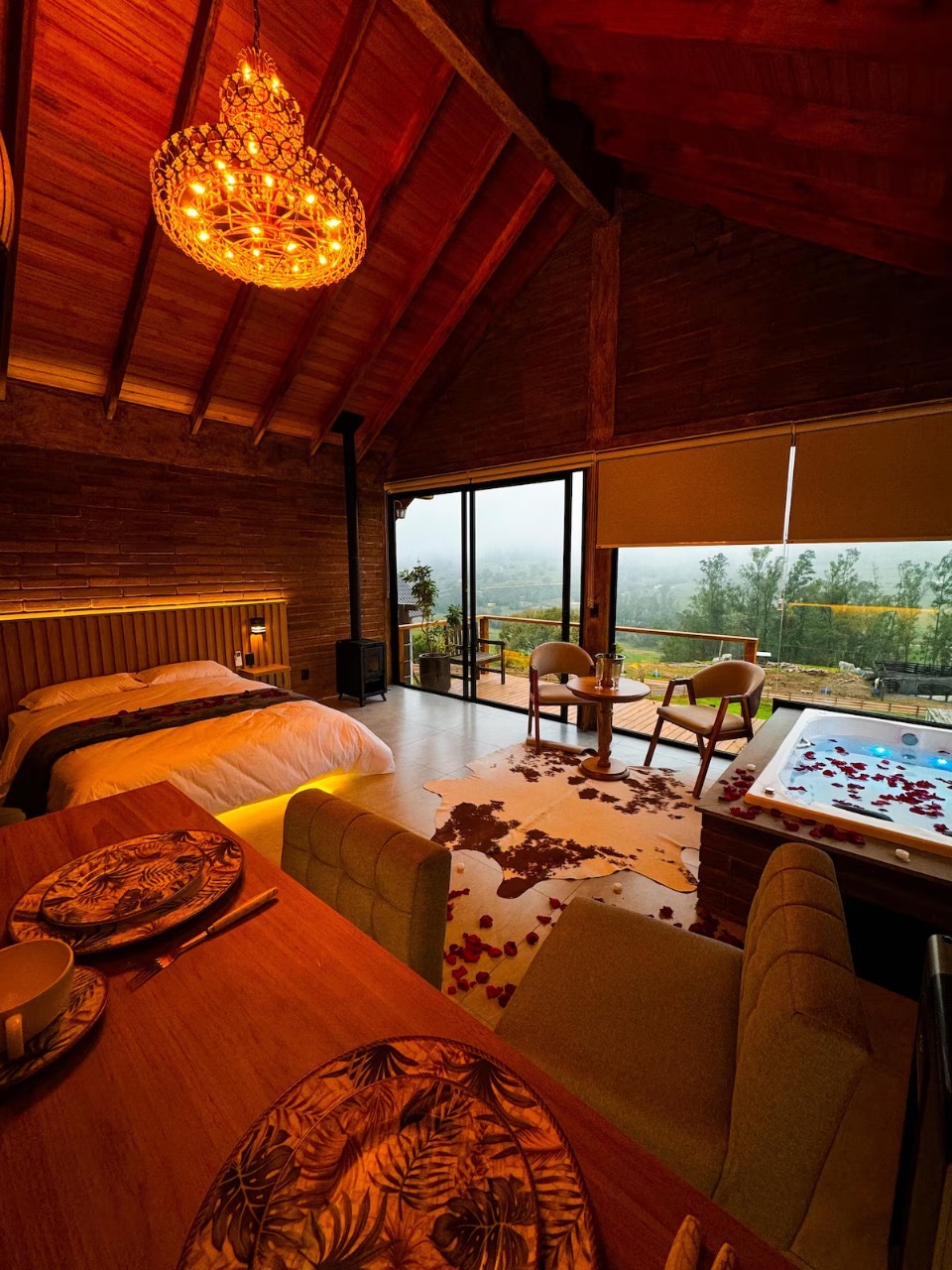 Ar condicionado Secador de cabelo TV a cabo / Smart TV Jacuzzi / Ofurô / Banheira Coberta Frigobar Lareira Máquina de Café Enxoval de Luxo (+ Roupão e Pantufa) Sauna Cozinha Estação de trabalho (mesa e cadeira) Piscina Aquecida ou climatizada Borda Infinita Coberta