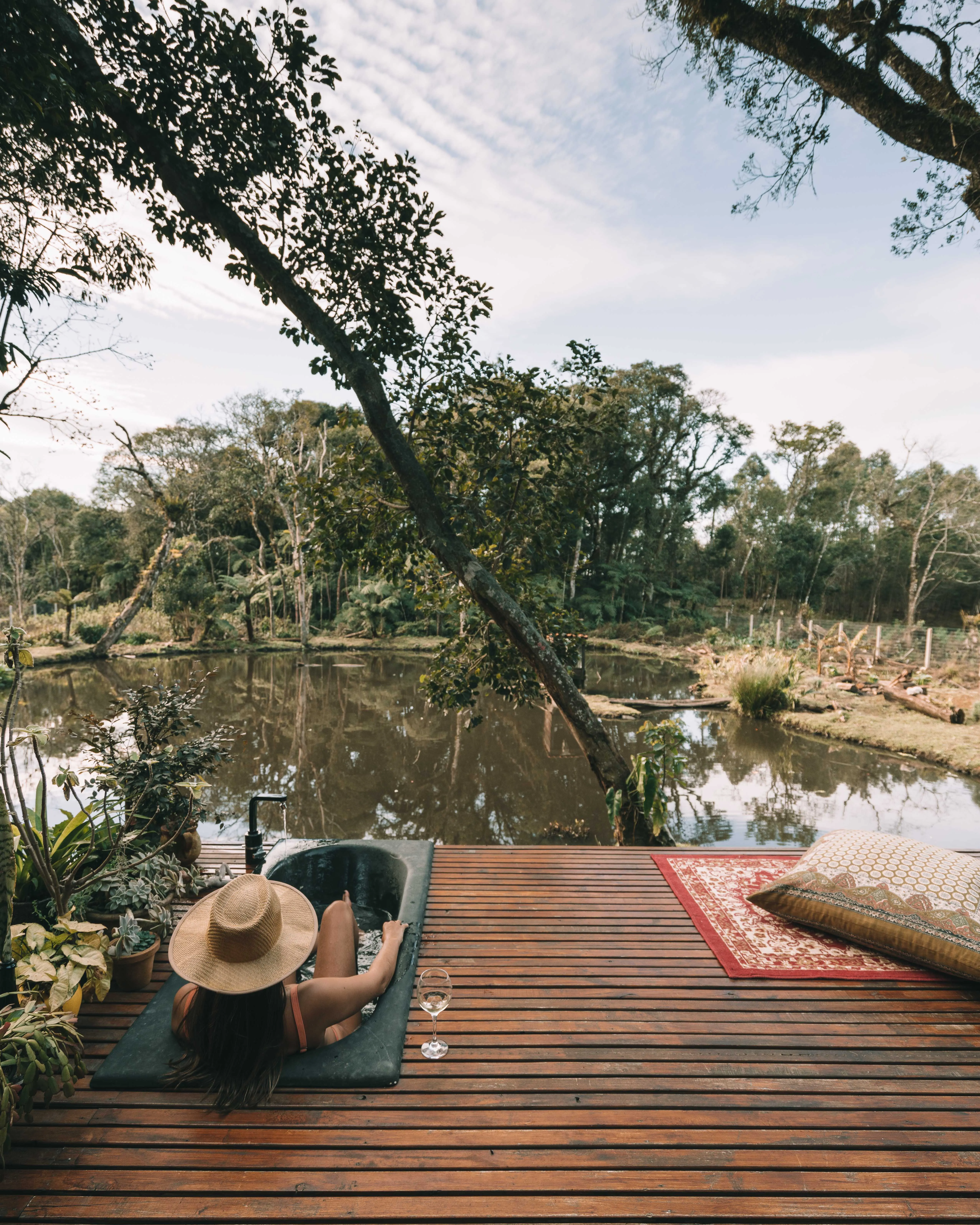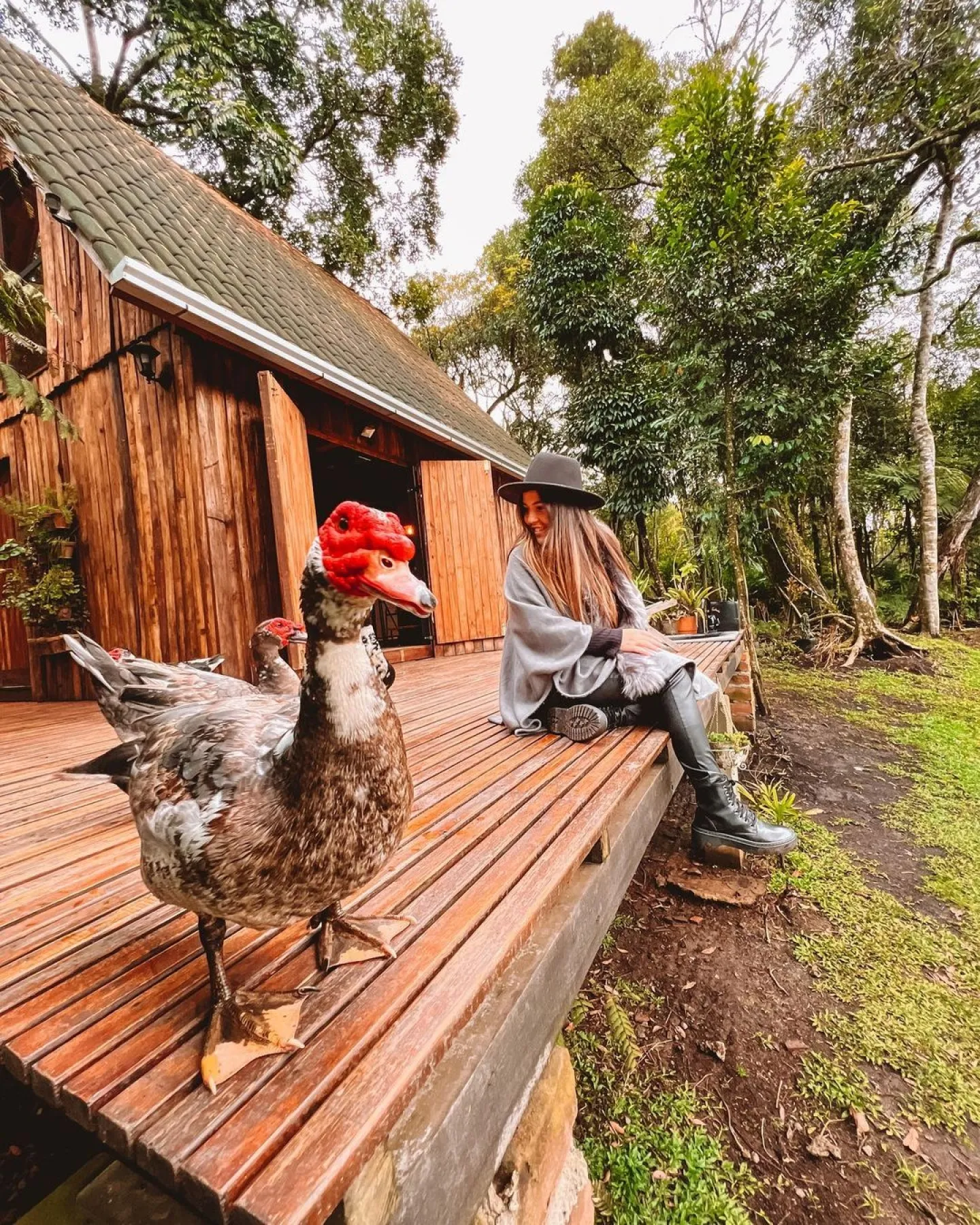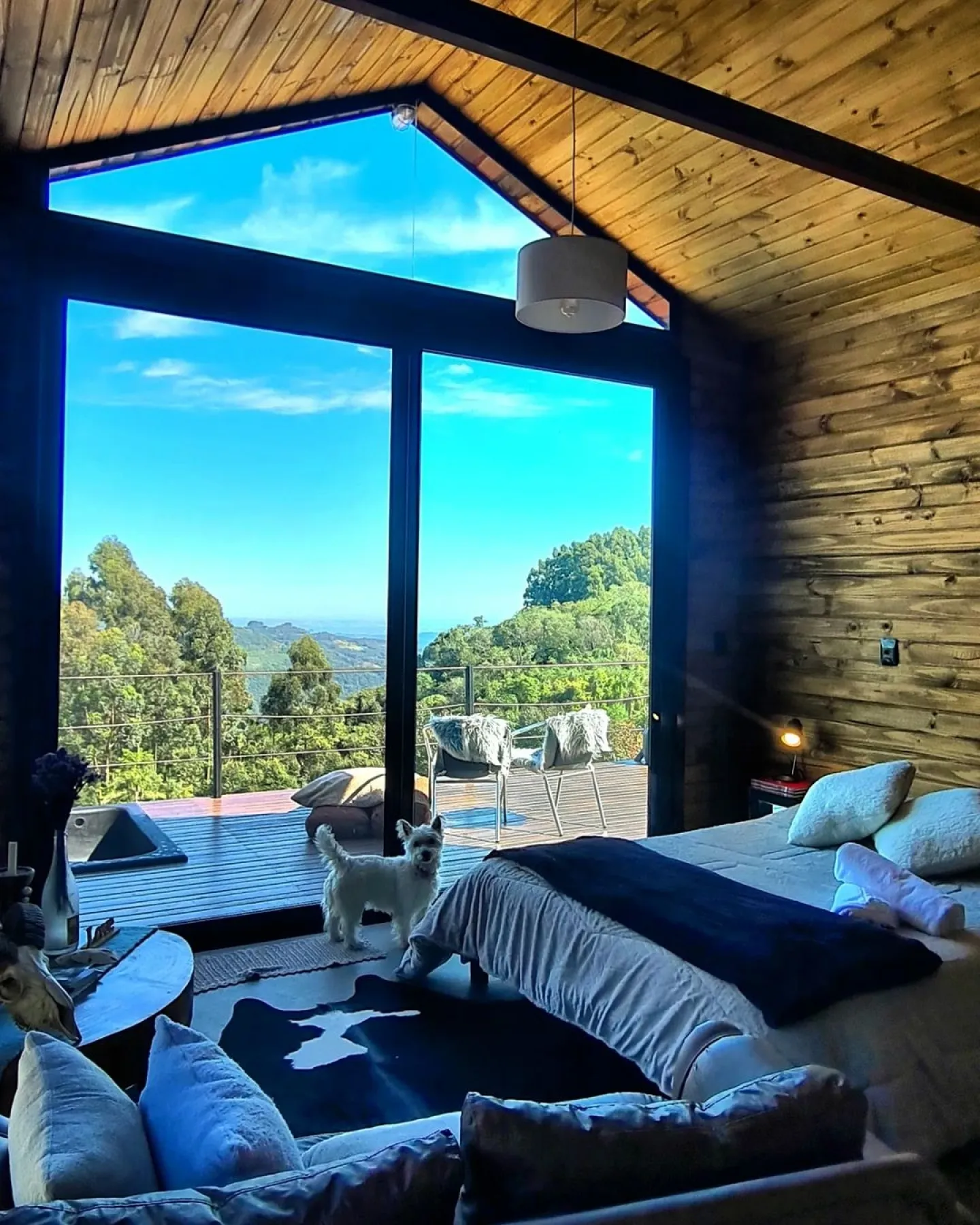 A cabana em meio à natureza para curtir e relaxar em Morro Reuter, na Serra Gaúcha, é o sítio Fox Farm Hill, um espaço perfeito para duas pessoas. Imagine-se relaxando no deck com uma taça de vinho local, aninhando-se ao lado da fogueira ou mergulhando na banheira enquanto aprecia a vista deslumbrante do lago. Localizado a 70 minutos de carro de Porto Alegre e a 40 minutos de Gramado.