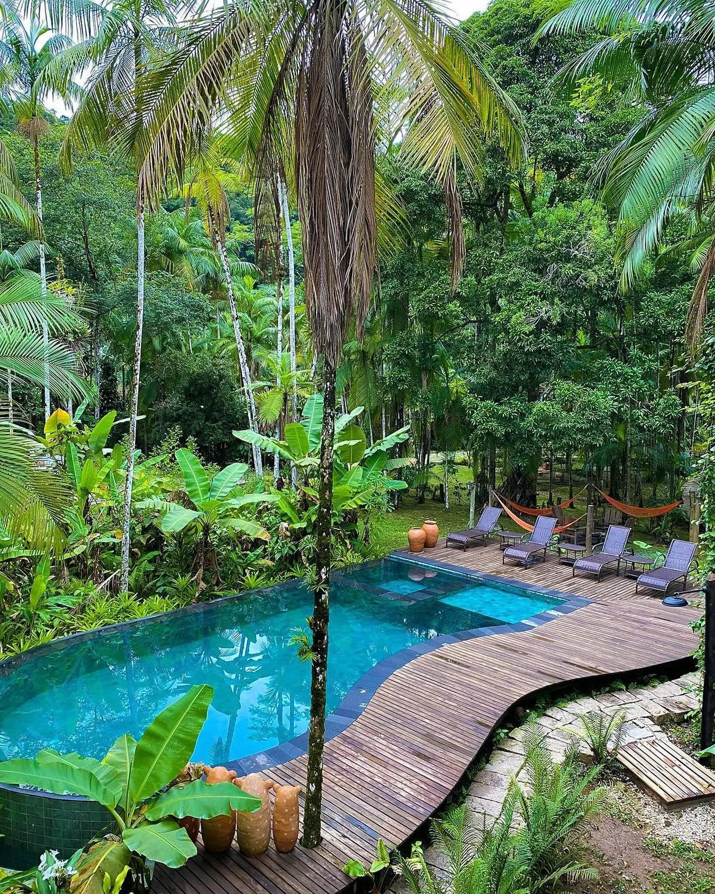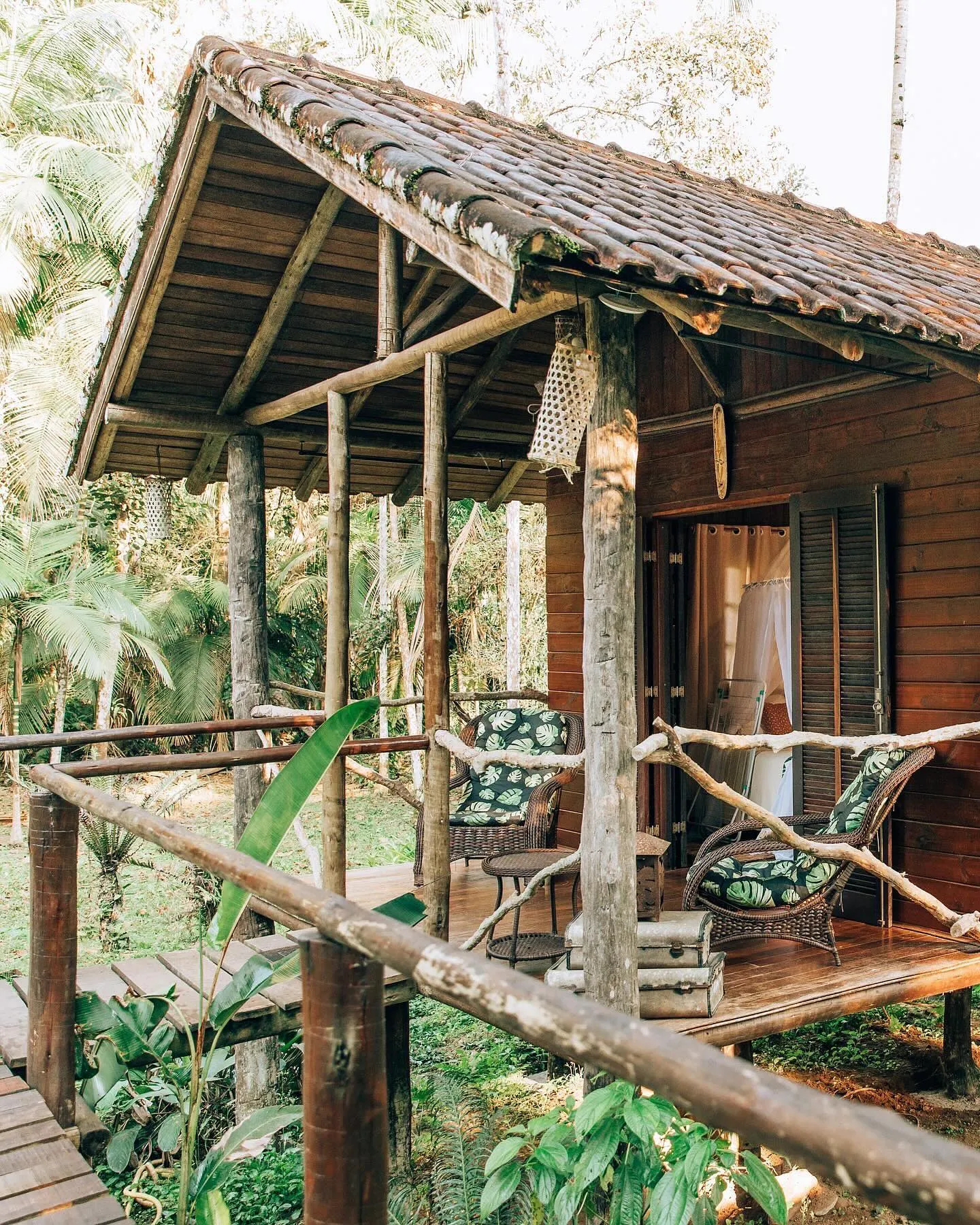 Os bangalôs estão suspensos sobre a mata e os quartos são totalmente equipados com o que há de melhor para o conforto dos hóspedes após curtirem as aventuras na região.