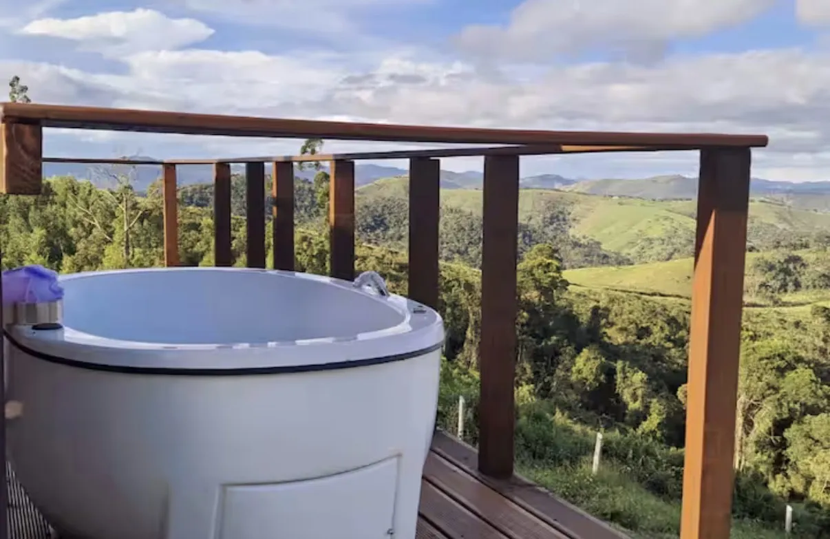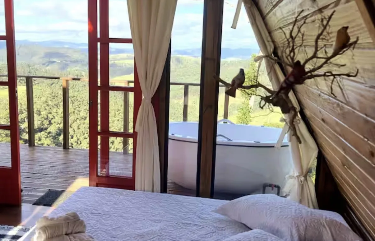 Este refúgio romântico no alto da montanha convida a desacelerar em meio a uma atmosfera tranquila e cheia de estilo, onde o som dos pássaros e a vista deslumbrante criam o cenário perfeito para momentos a dois. Com hidromassagem tipo ofurô sobre o deck, fogueira para noites sob as estrelas, telescópio de observação e espaços pensados para contemplação, a experiência se torna única e envolvente, cercada por natureza e total sensação de isolamento.