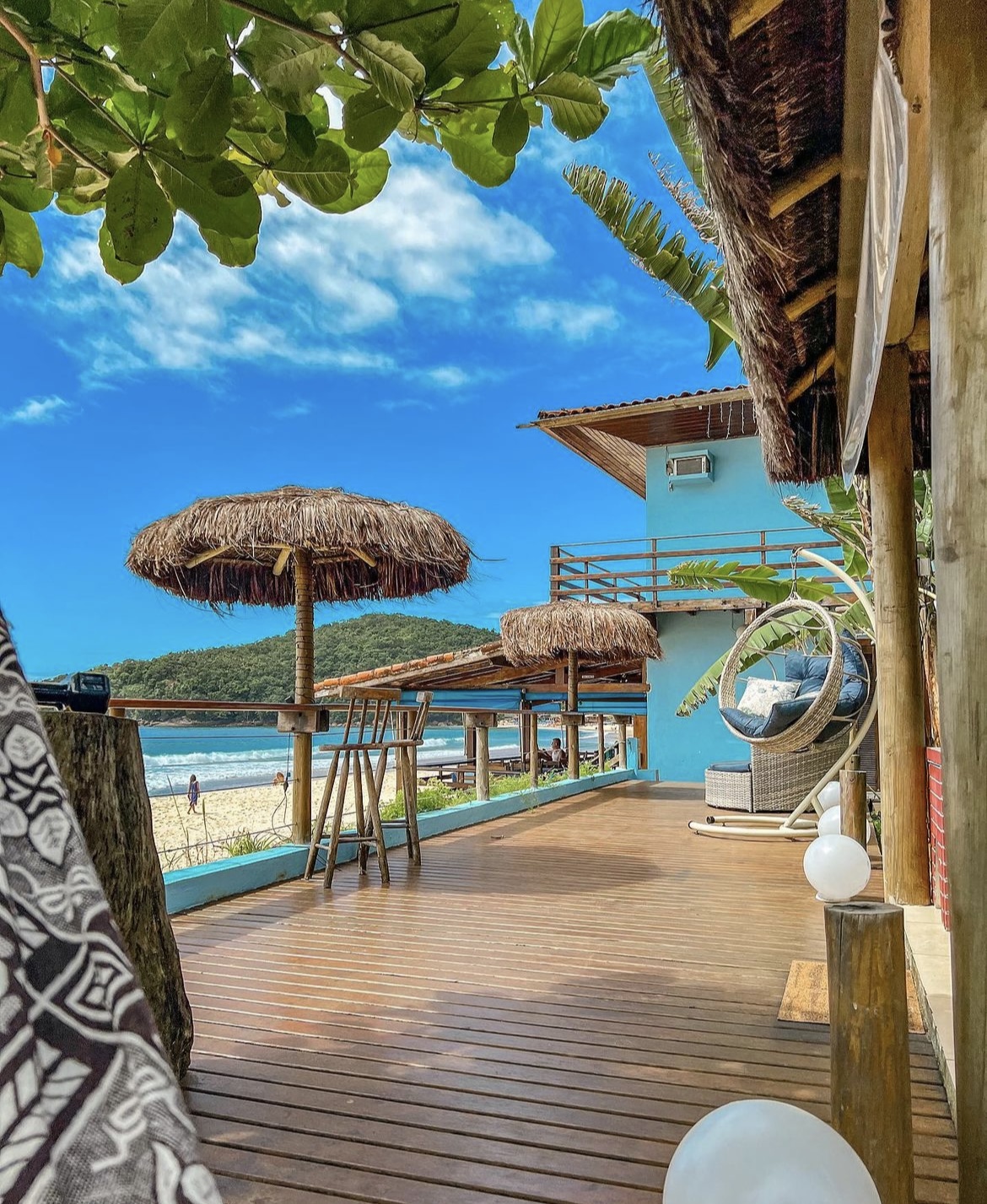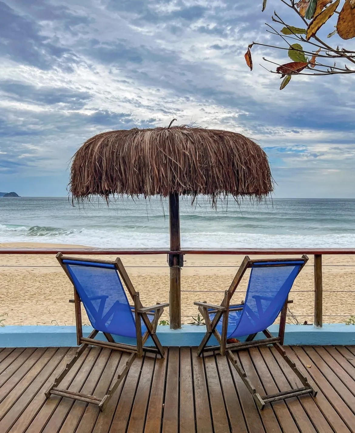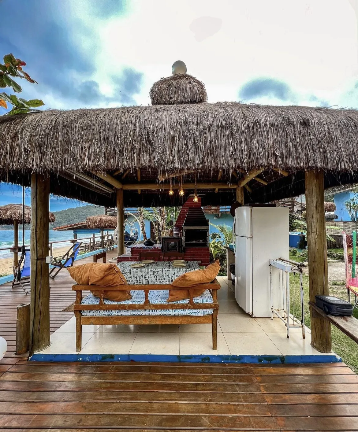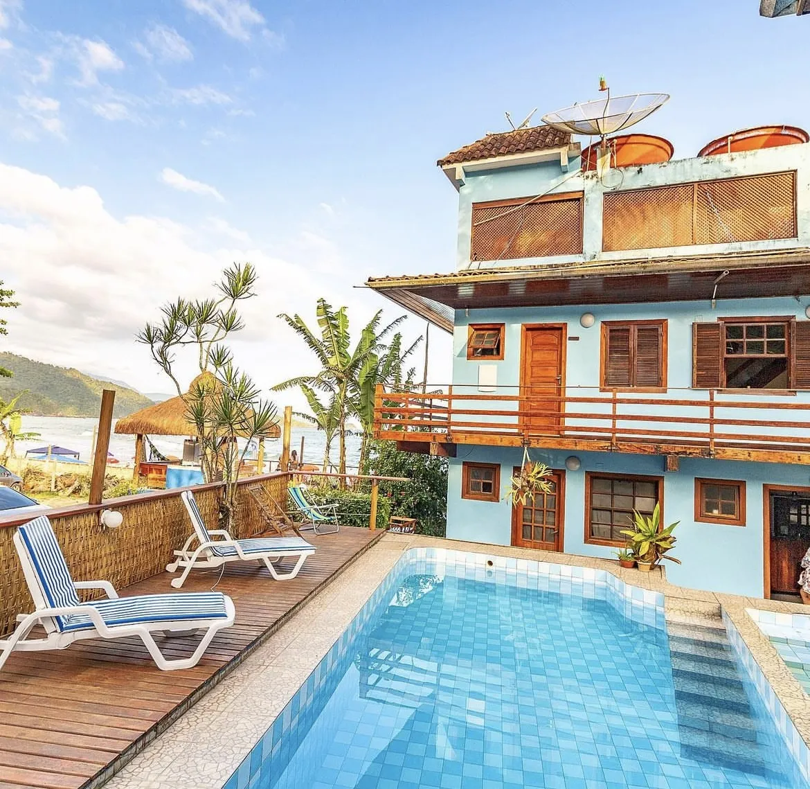 Hotel com os pés na areia de Trindade. O hotel possui duas opções de acomodação. As suítes standard Rio de Janeiro, Angra dos Reis e Paraty saem para uma varanda de frente para o mar. Cada suíte acomoda até 4 pessoas com cama de casal e bicama. Todas possuem ar-condicionado, ventilador de teto, frigobar, TV LCD e ducha com box em vidro. A água possui aquecimento solar e central, contribuindo assim para a proteção do meio ambiente. Já as suítes duplex Ubatuba, São Sebastião, Bertioga e Santos são maiores, possuem 2 ambientes com escada dentro da suíte, subindo para um mezanino que dá acesso a um terraço de frente para o mar. Cada suíte acomoda até 4 pessoas e são equipadas da mesma forma que as standard, porém com ventiladores e TVs em ambos os ambientes, além de uma rede no terraço.