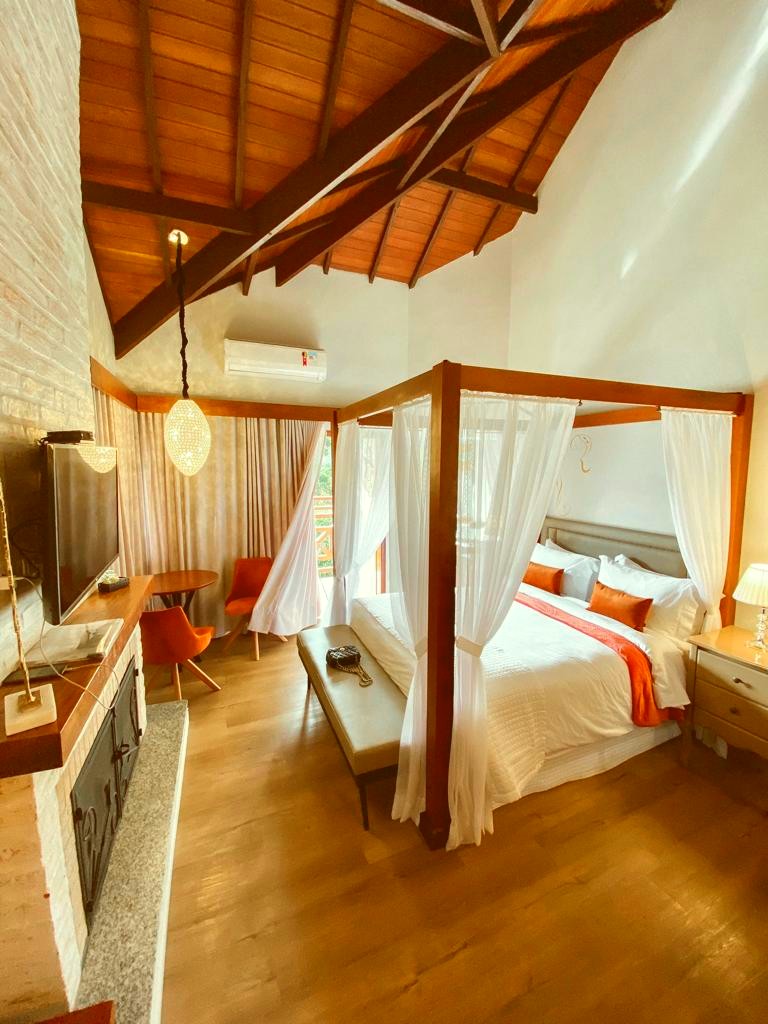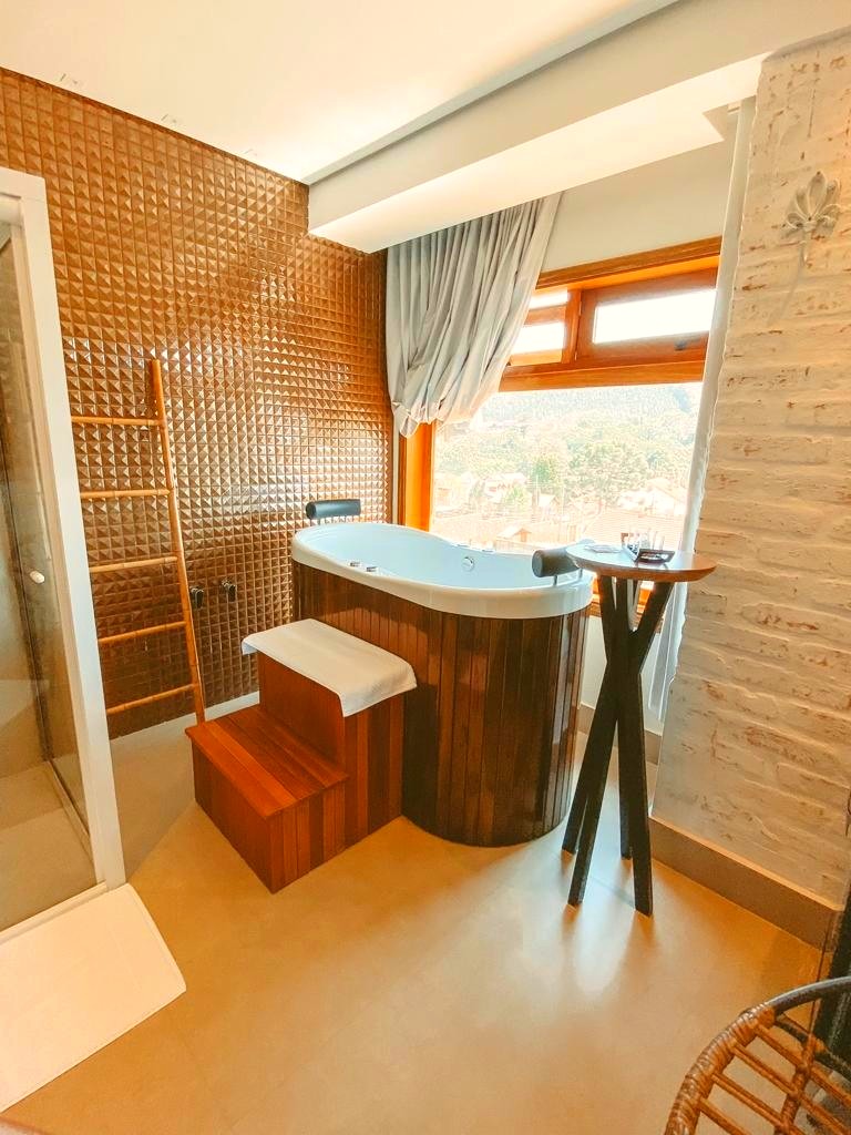 Ar condicionado Secador de cabelo TV a cabo / Smart TV Jacuzzi / Ofurô / Banheira Coberta Frigobar Lareira Máquina de Café Enxoval de Luxo (+ Roupão e Pantufa) Sauna Cozinha Estação de trabalho (mesa e cadeira) Piscina Aquecida ou climatizada Borda Infinita Coberta