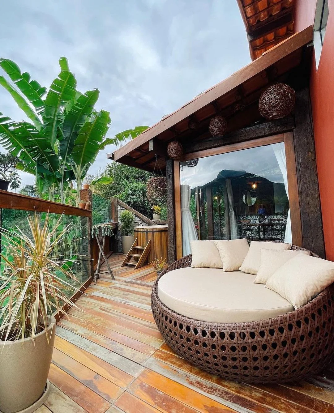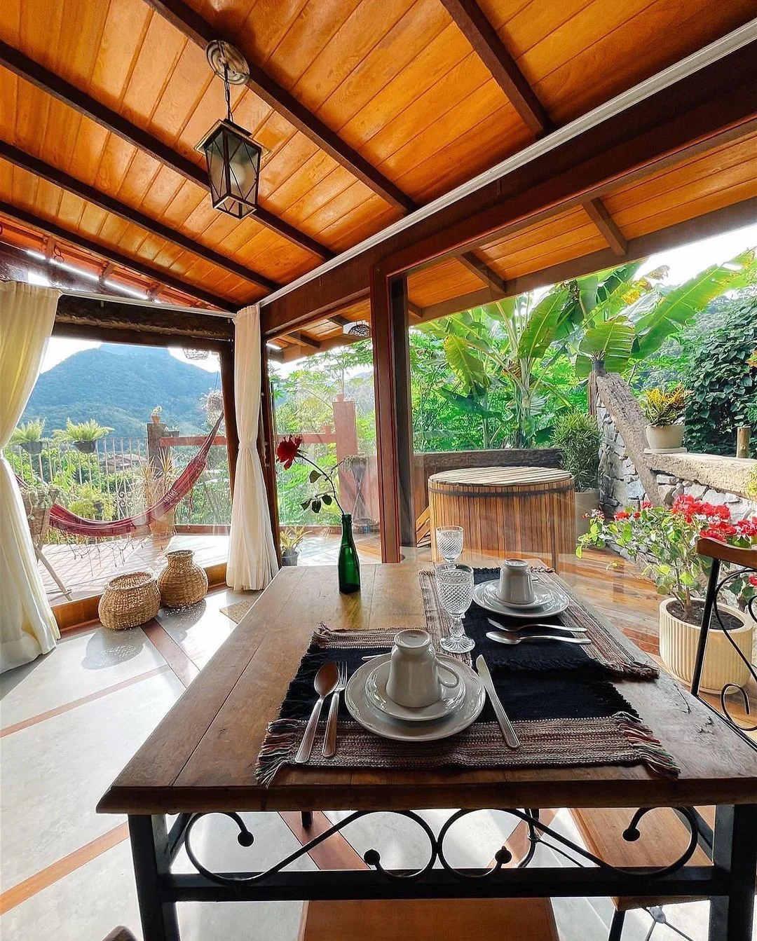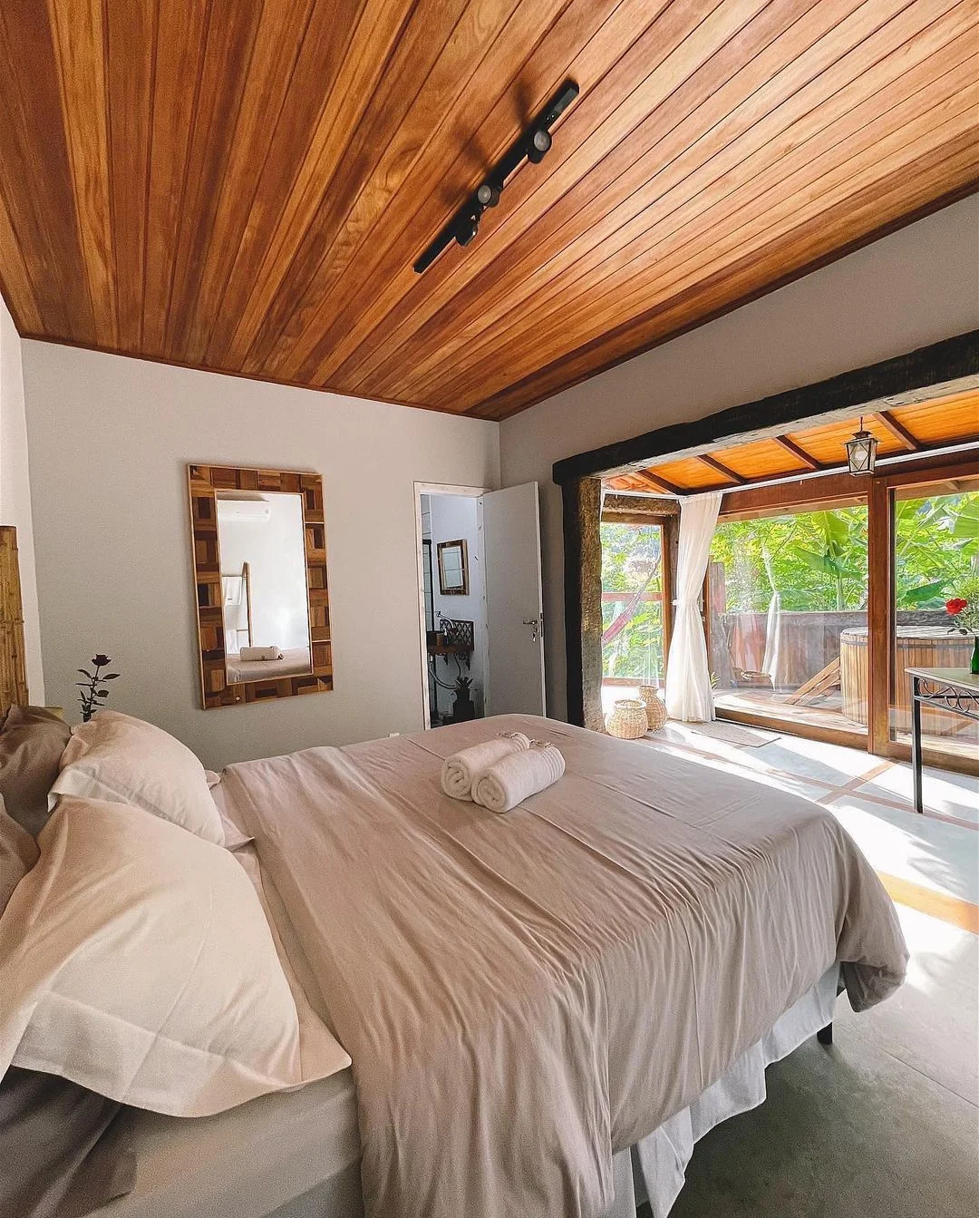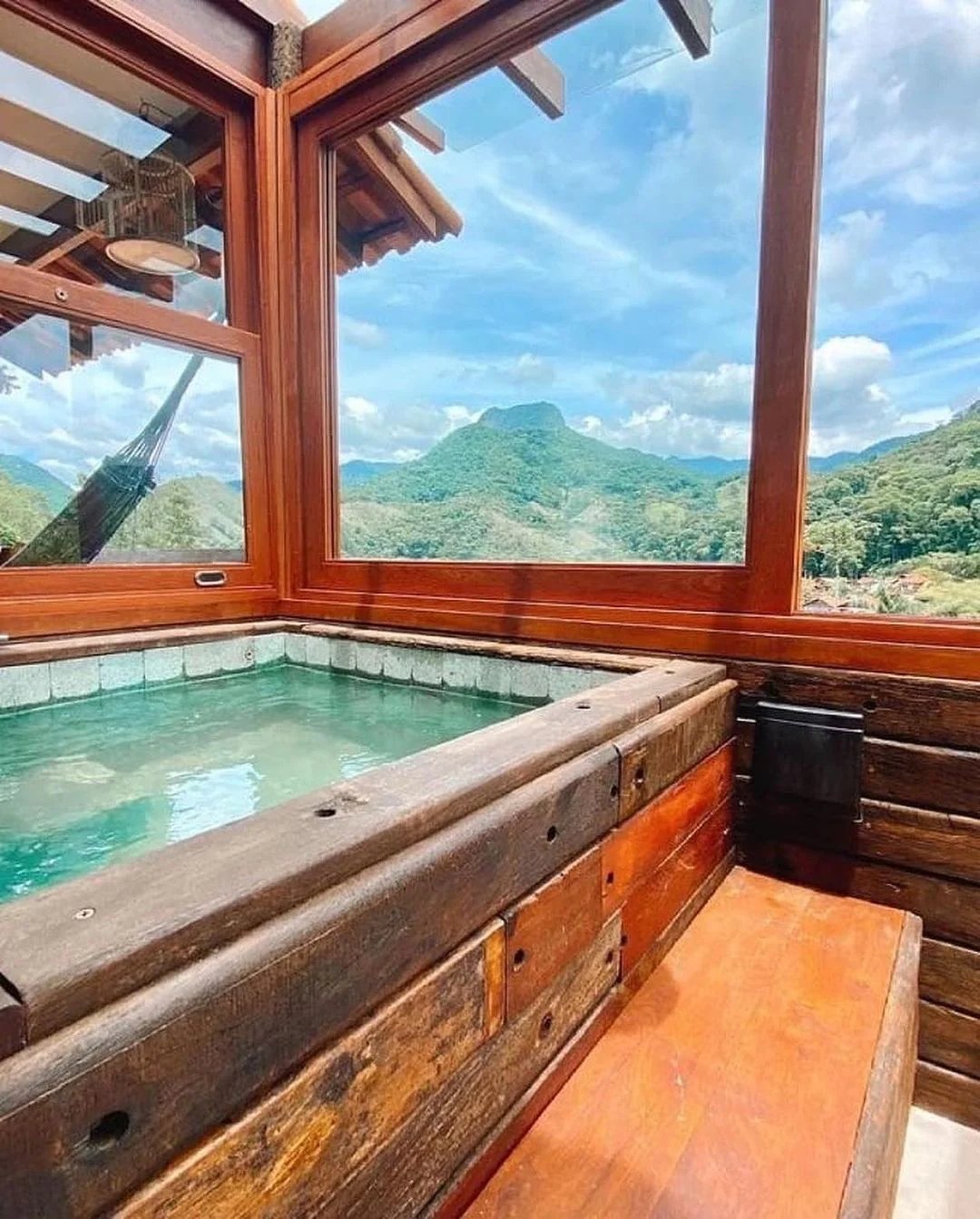 A acomodação oferece cama Queen, frigobar, cooktop, ofurô com teto de vidro e vista para o céu, varanda com rede, água da nascente, chuveirão e um delicioso café da manhã completo.