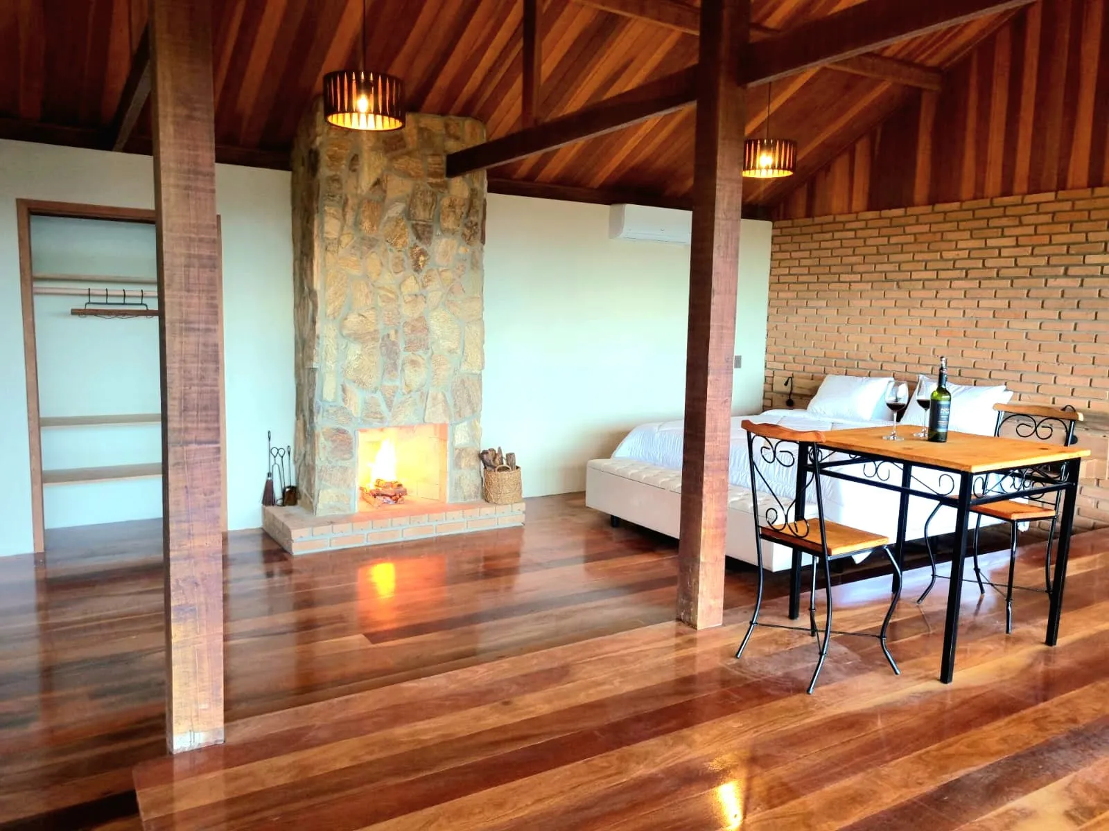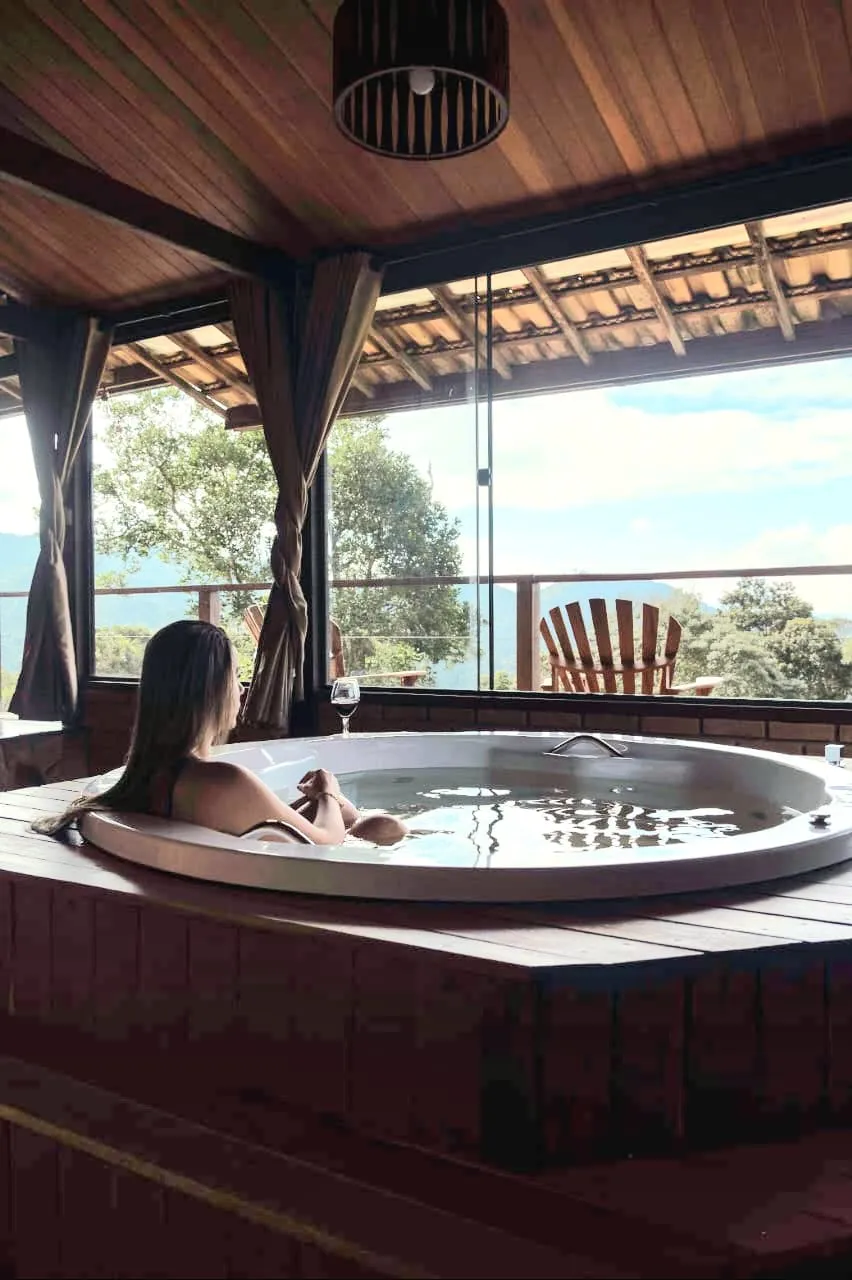 Chalés exclusivos com 100 m² com sauna e hidromassagem privativas, vista panorâmica para as montanhas,adega e lareira.