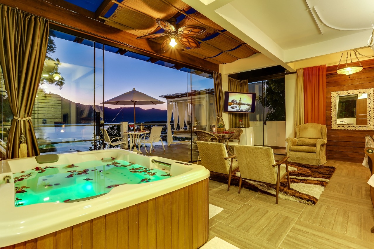 Ar condicionado Secador de cabelo TV a cabo / Smart TV Jacuzzi / Ofurô / Banheira Coberta Frigobar Lareira Máquina de Café Enxoval de Luxo (+ Roupão e Pantufa) Sauna Cozinha Estação de trabalho (mesa e cadeira) Piscina Aquecida ou climatizada Borda Infinita Coberta