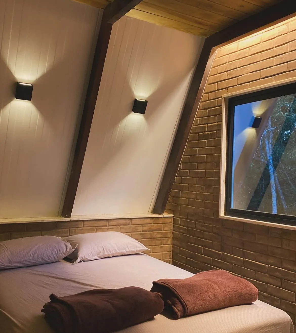 Acomoda até quatro adultos e duas crianças até doze anos. As kabanas foram projetadas para oferecer uma experiência de estadia em completa harmonia com a natureza, proporcionando uma conexão única e o divino sentimento da presença do Criador.