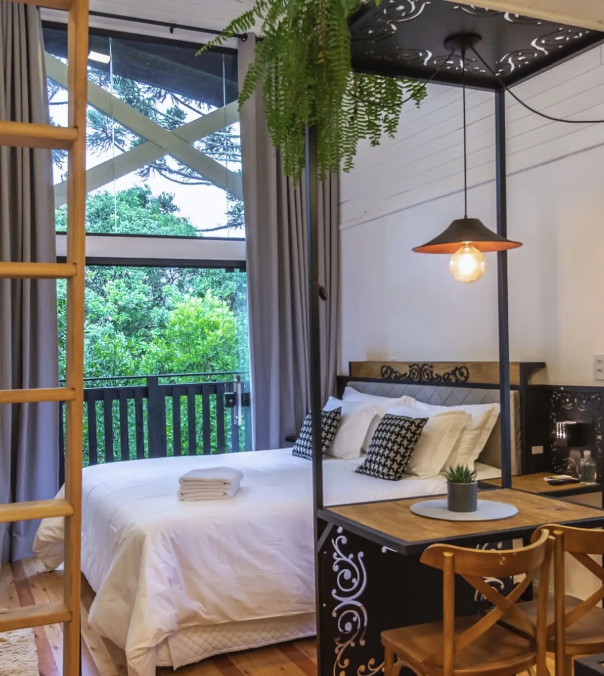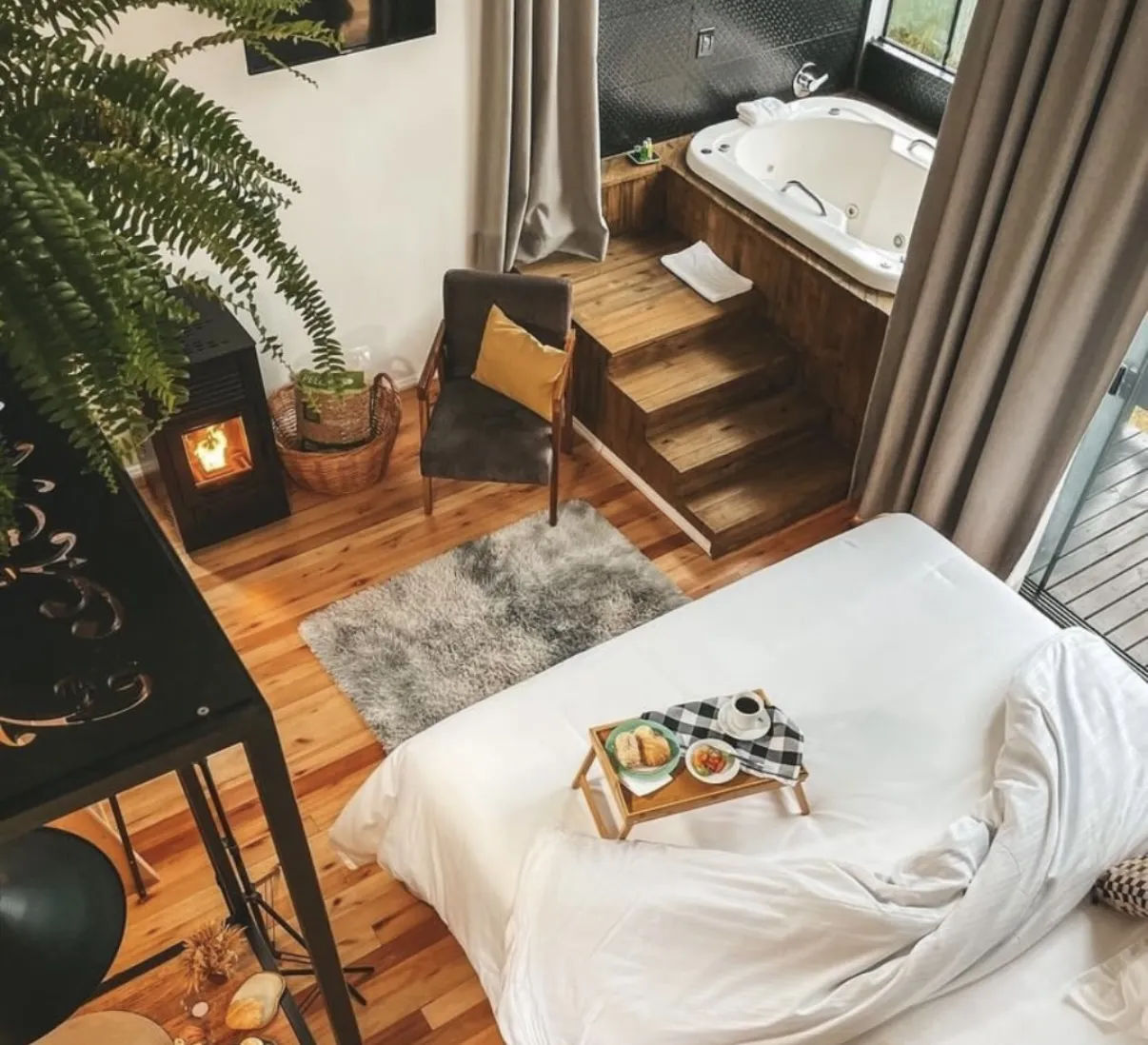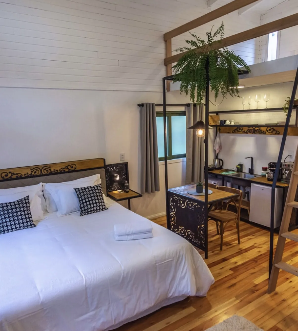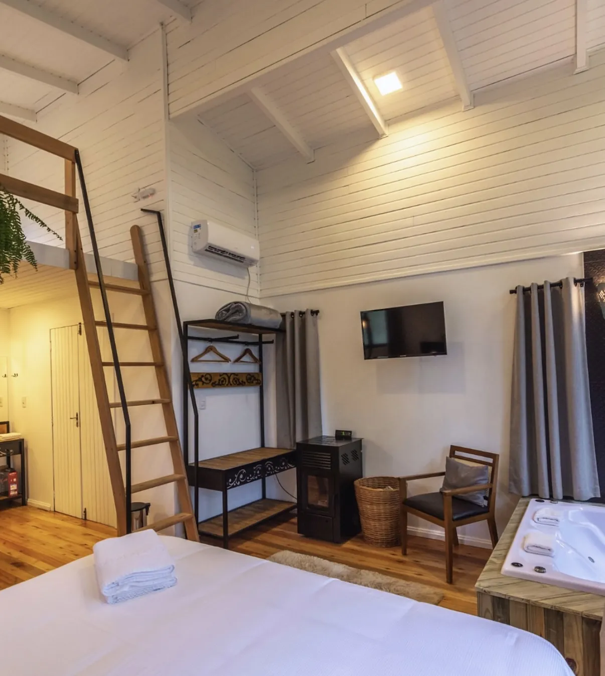 Localizada em Urubici, na Serra Catarinense, esta hospedagem oferece lofts aconchegantes com estrutura moderna e funcional. Cada unidade dispõe de ar-condicionado, banheira de hidromassagem e cozinha compacta equipada com utensílios essenciais, como micro-ondas, frigobar, cafeteira e chaleira. Os ambientes foram projetados para oferecer conforto e praticidade, com mesa para refeições, TV via satélite e banheiro privativo com amenities e secador de cabelo.