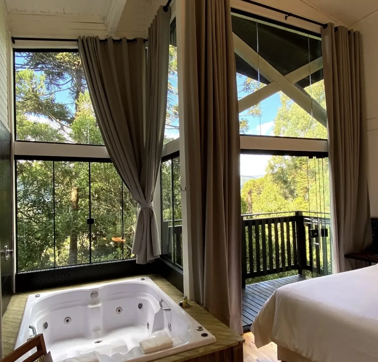 Ar condicionado Secador de cabelo TV a cabo / Smart TV Jacuzzi / Ofurô / Banheira Coberta Frigobar Lareira Máquina de Café Enxoval de Luxo (+ Roupão e Pantufa) Sauna Cozinha Estação de trabalho (mesa e cadeira) Piscina Aquecida ou climatizada Borda Infinita Coberta