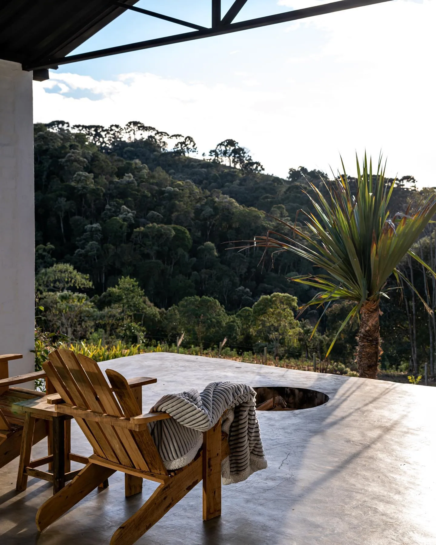 A tiny house de 50 m² está integrada à paisagem da Serra da Mantiqueira, em Gonçalves. A varanda convida à contemplação da mata nativa e do céu estrelado — com o som tranquilo da natureza ao redor.